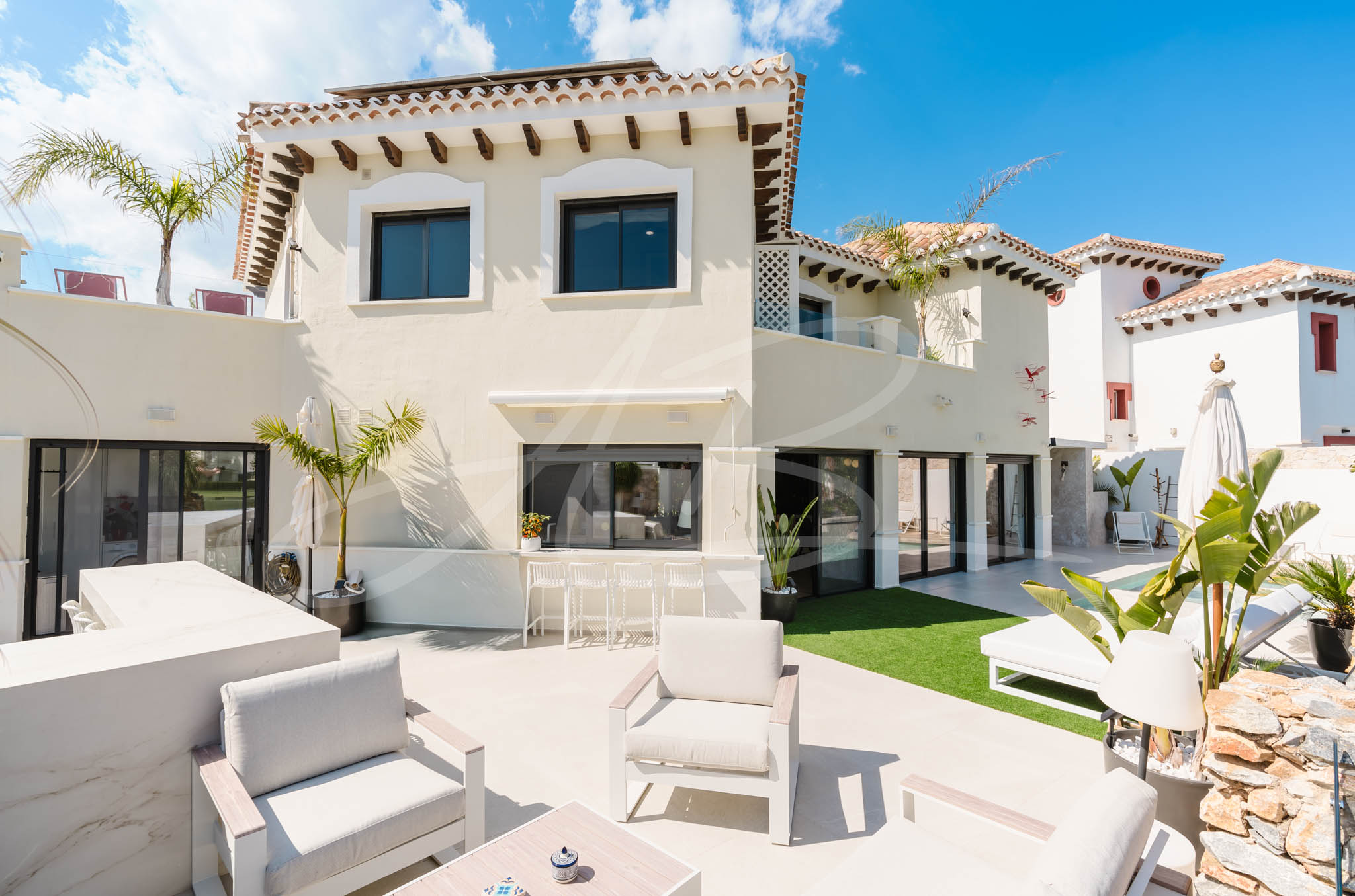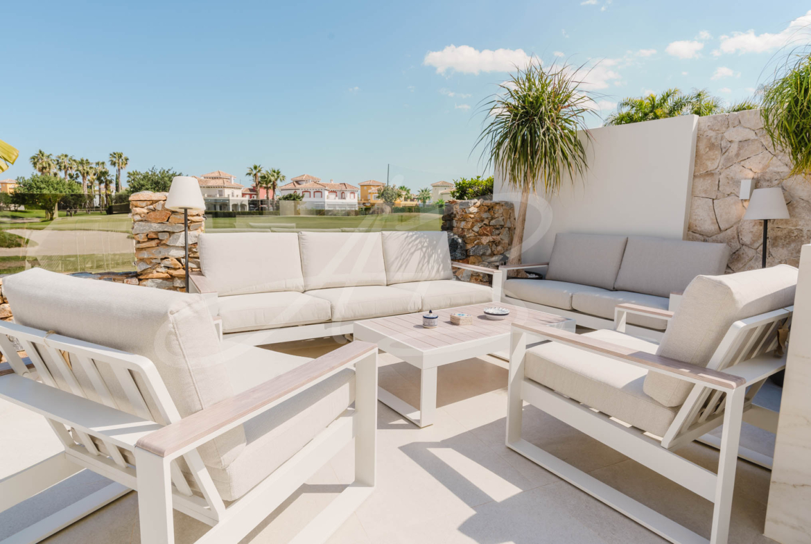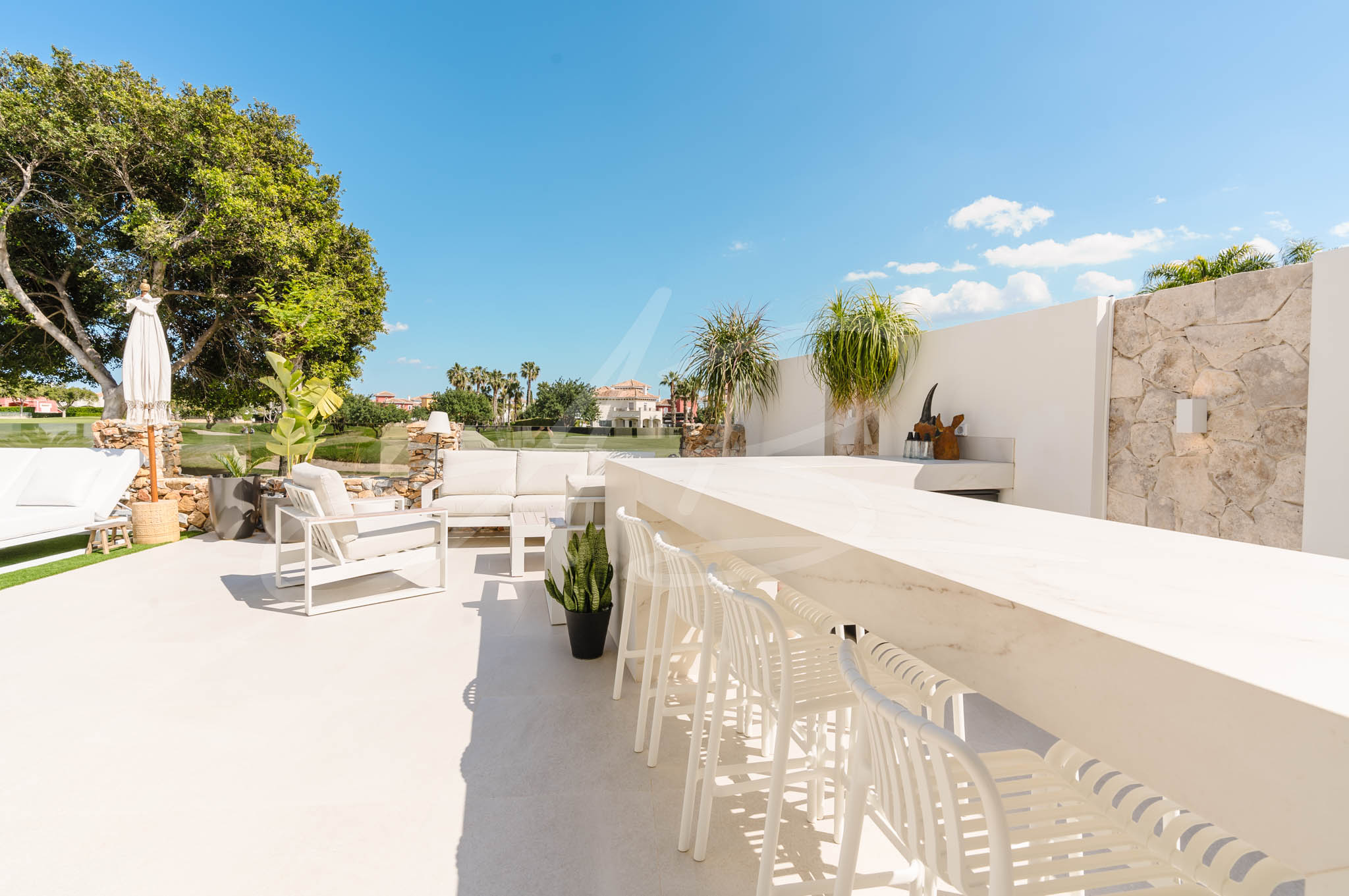 So where to begin? This home has been extended, designed and decorated to a most incredible standard; the present owners having used their own style, flair and previous experience alongside designers from all over Spain. Enjoying front line golf with amazing views of the first green, it remains secluded and private by the trees and greenery surrounding it, whilst its orientation means that it is bathed in sun for most of the day.