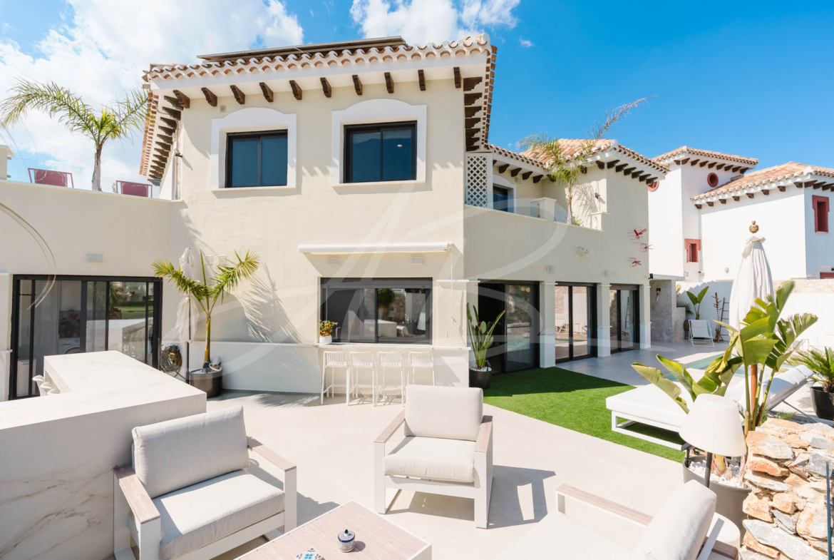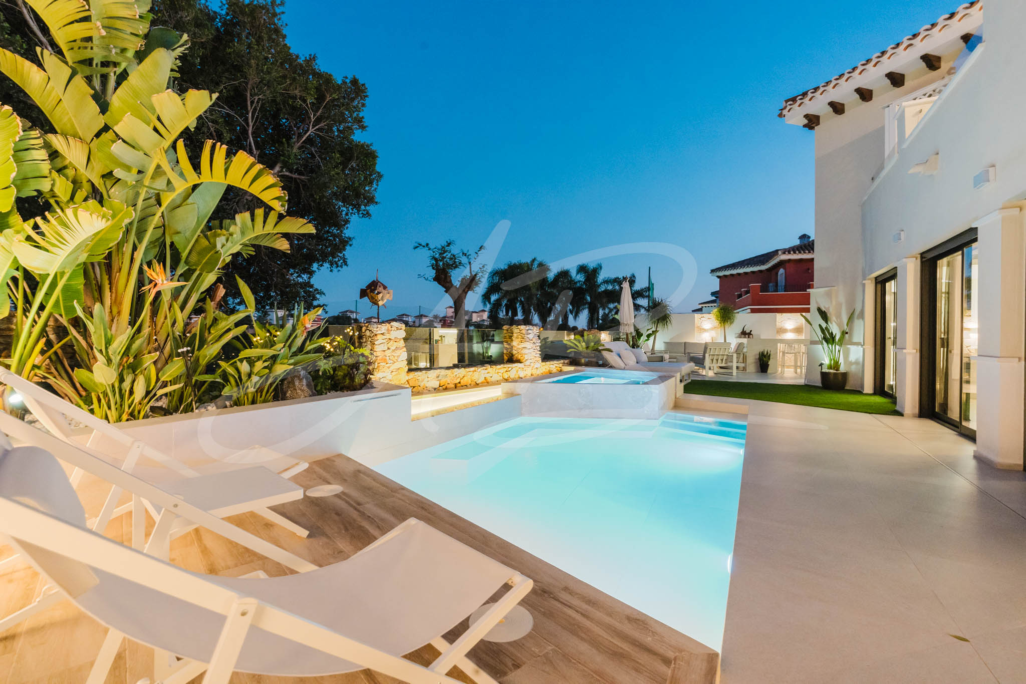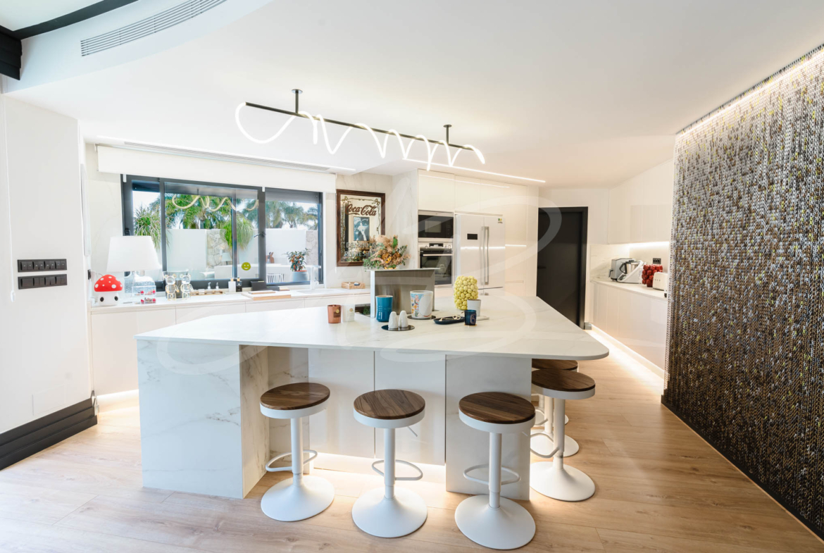 So where to begin? This home has been extended, designed and decorated to a most incredible standard; the present owners having used their own style, flair and previous experience alongside designers from all over Spain. Enjoying front line golf with amazing views of the first green, it remains secluded and private by the trees and greenery surrounding it, whilst its orientation means that it is bathed in sun for most of the day.