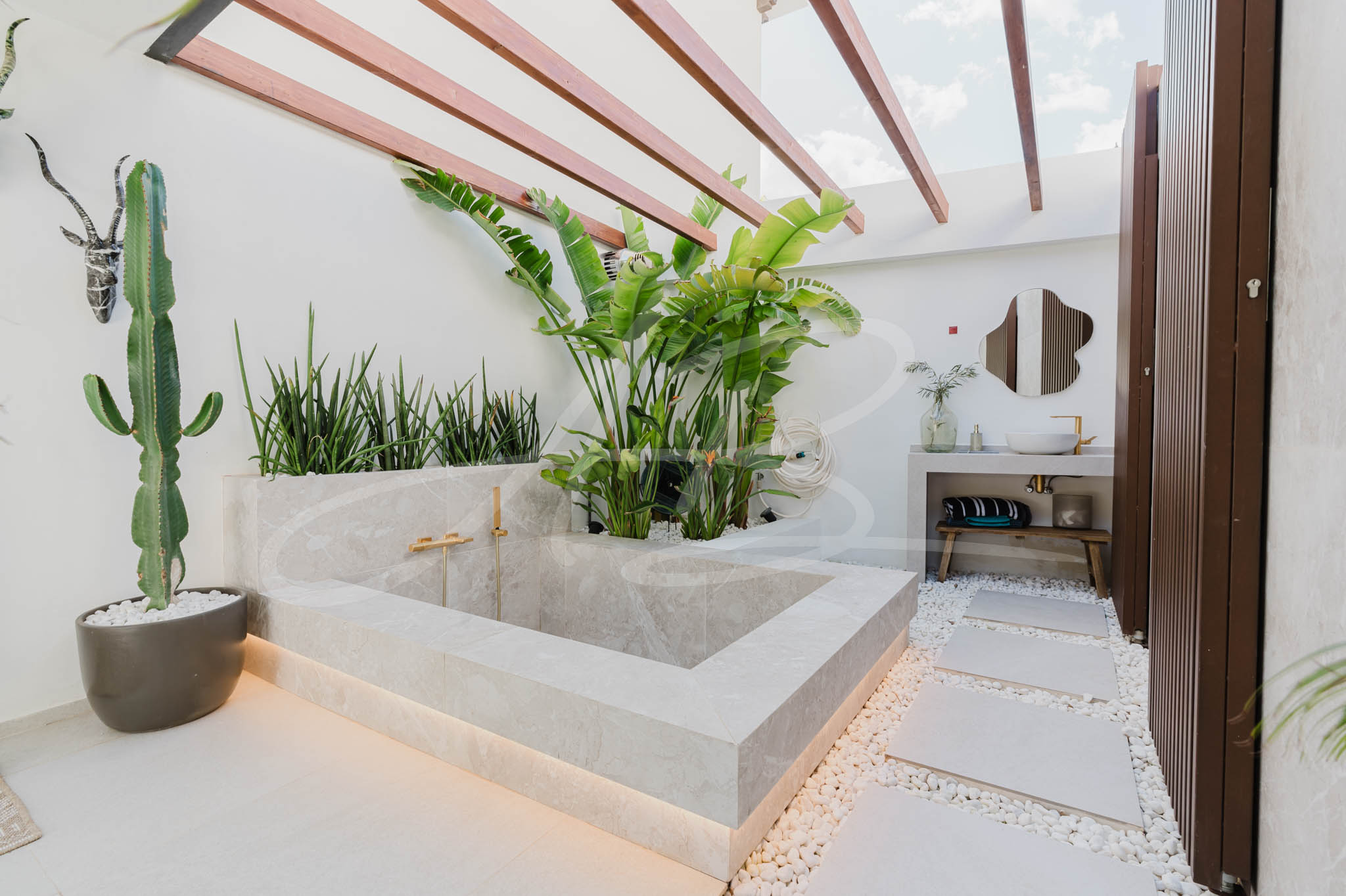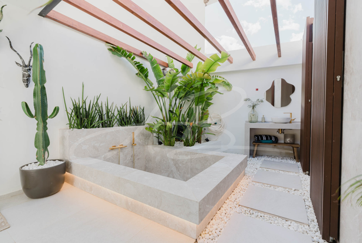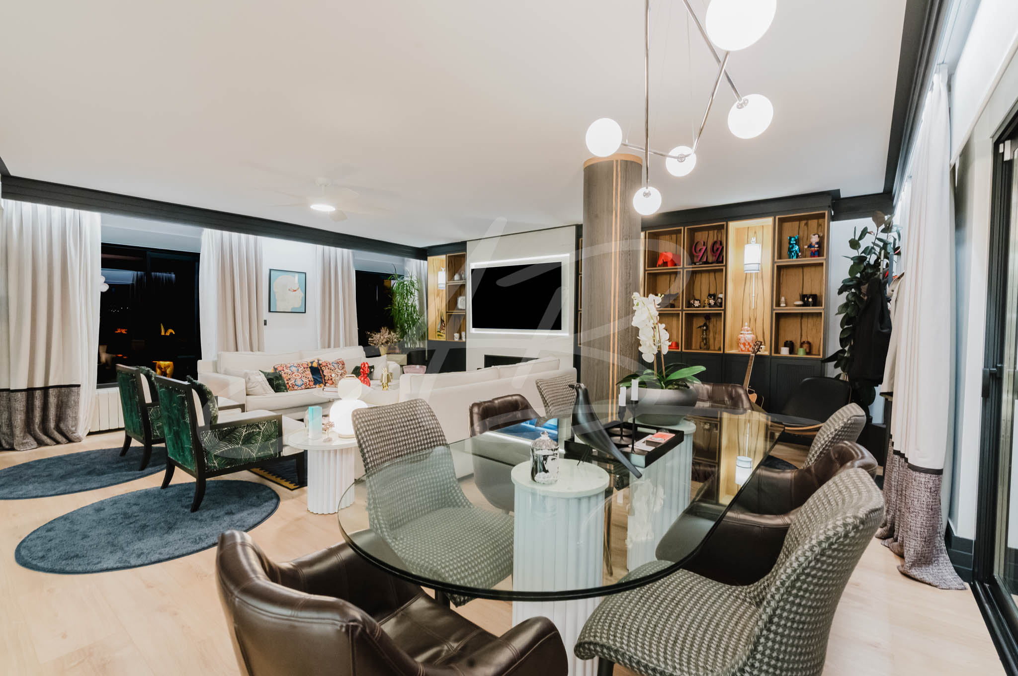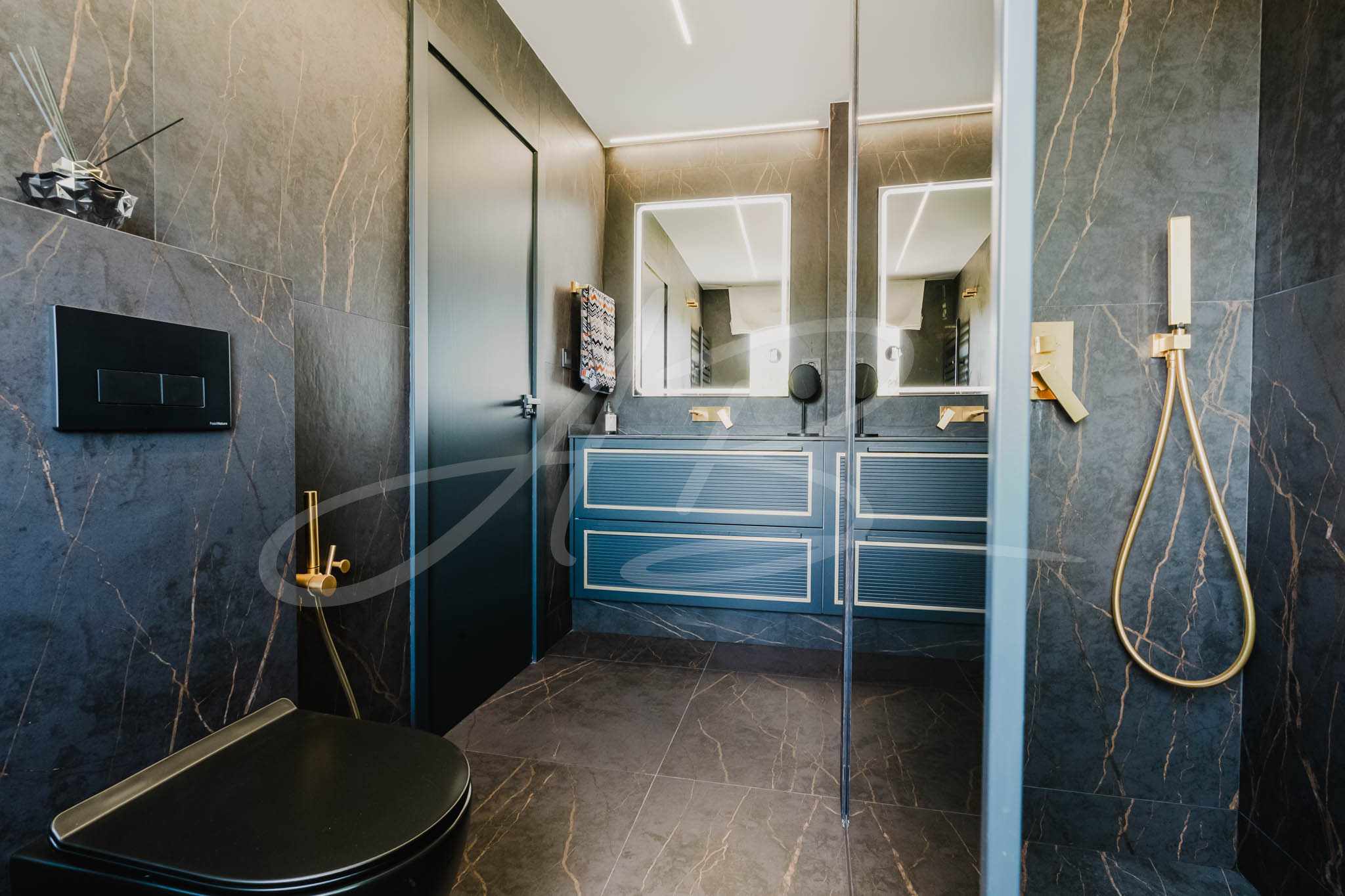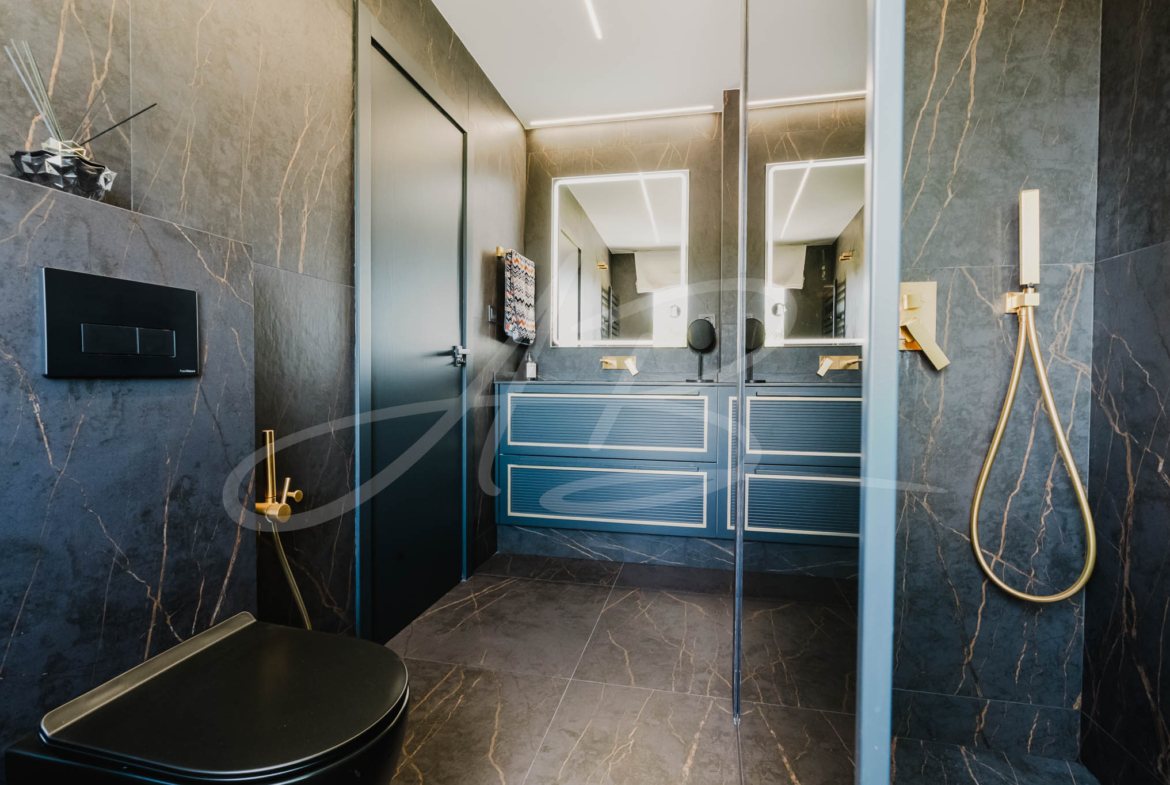 With its luxurious swimming pool and combined heated jacuzzi, the outside area is also home to a separate al-fresco bathroom incorporating a beneath-the-stars marble bath, shower and wc, all of which are finished with gold taps and accessories. Indeed all of the furnishings have been selected for their highest quality and finishes from Cosentino Dekton work surfaces in the kitchen, to exceptional marbles used throughout. Wood has been sourced from Milan’s Armani Hotel and flooring from Parador – a superb high-end manufacturer of parquet. To summise, this is a home which oozes glamour whilst still retaining a comfortable and cozy environment.
