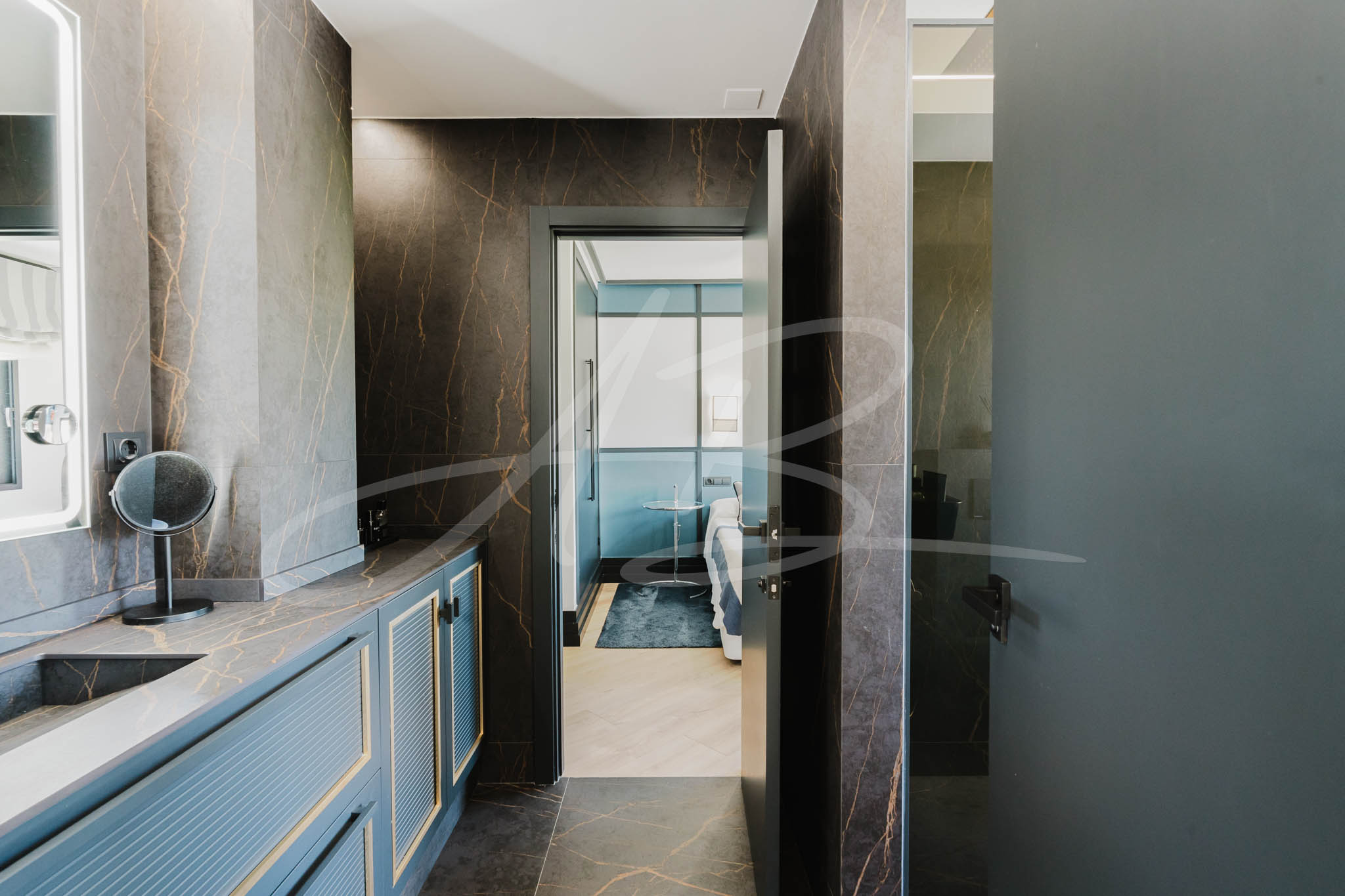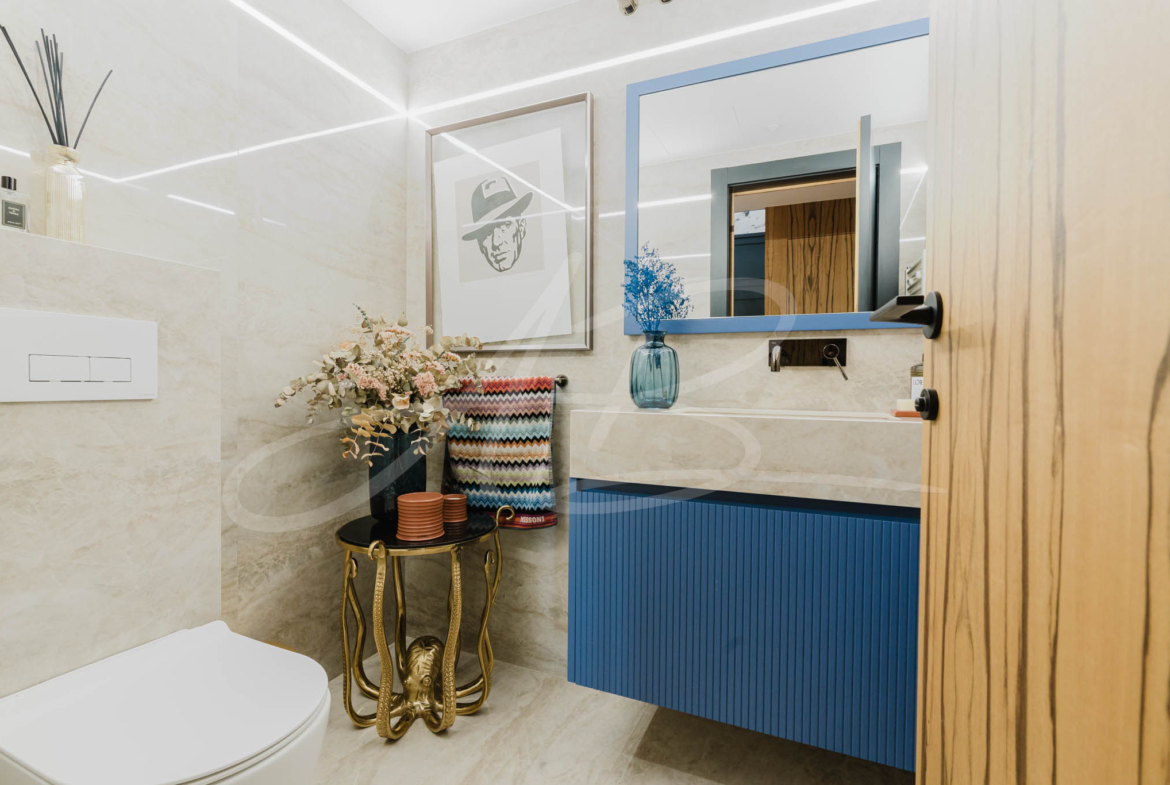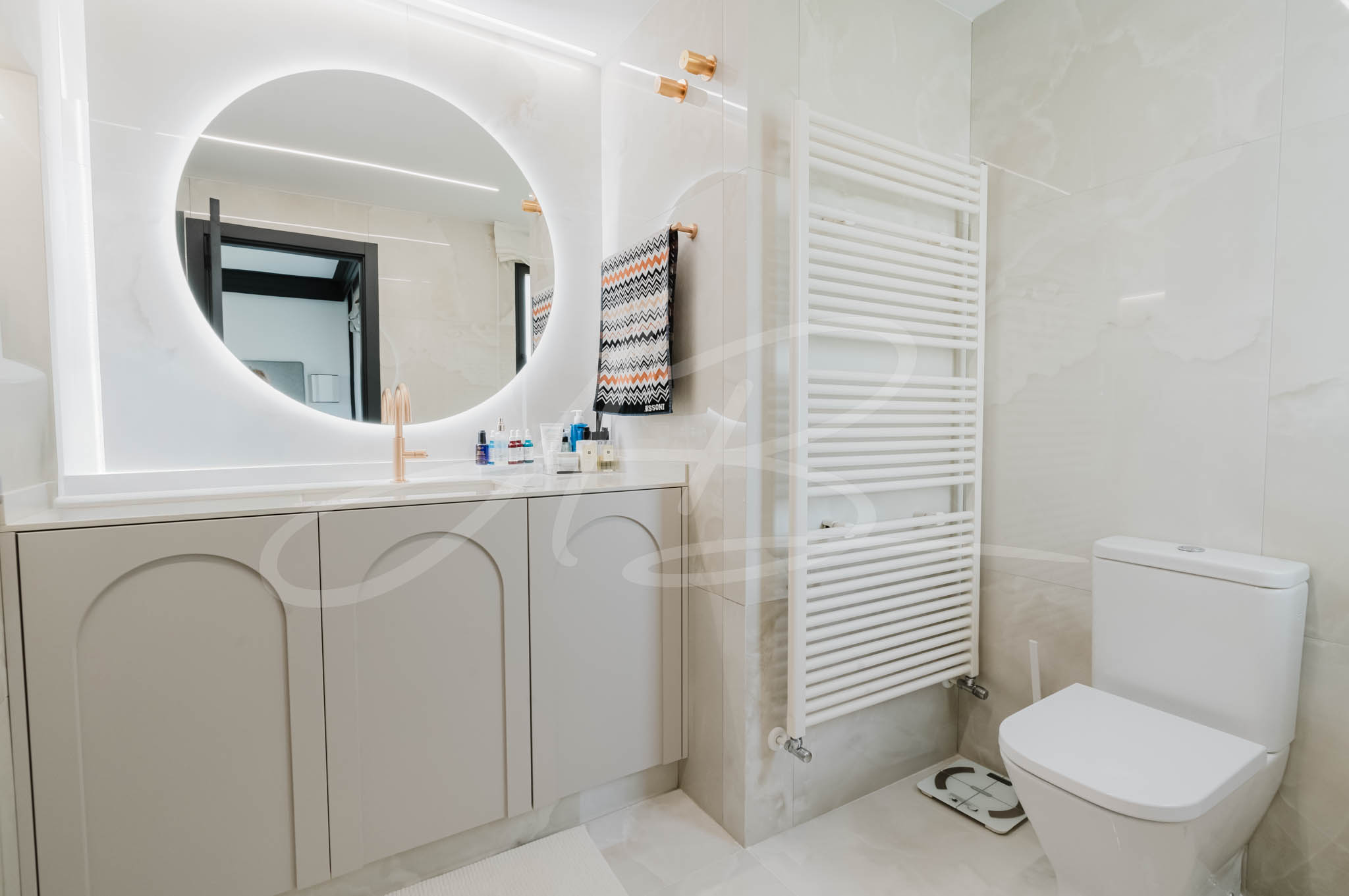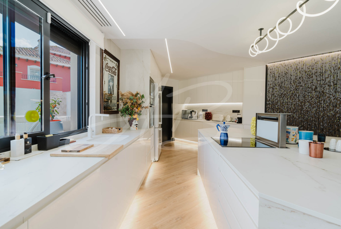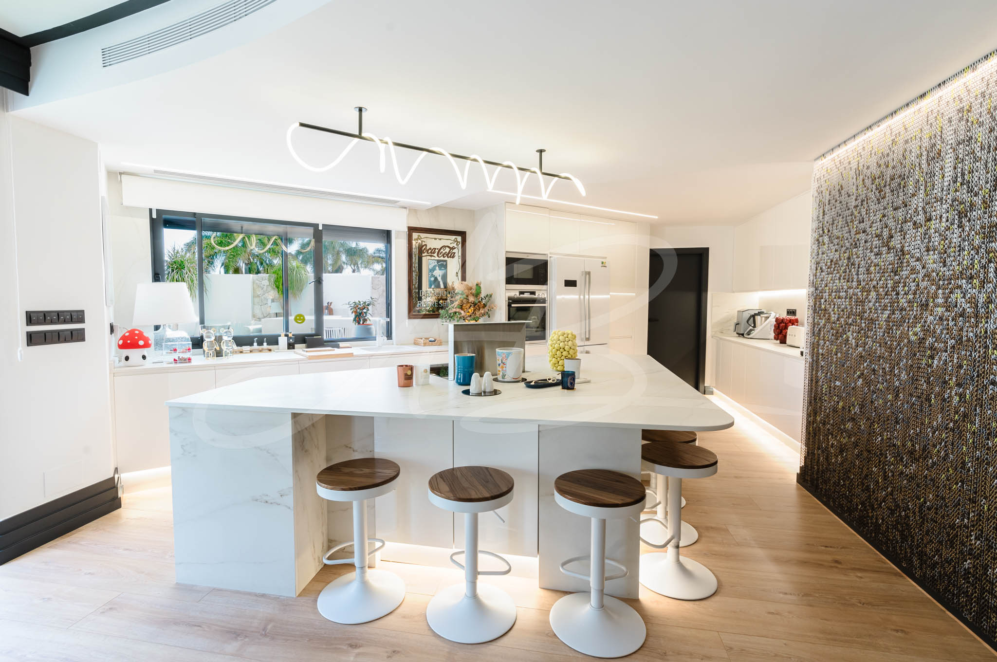The designer kitchen – which comes with high end electrodomesticos – is bathed in LED lighting, cleverly and discreetly fitted into the units and beneath the worktops to give the space a calming yet dramatic feel as nightfall descends.