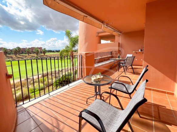 This super three bedroom two bathroom fully furnished second floor apartment is being sold under exclusive instruction with ourselves. Located by a fabulous communal swimming pool and within easy walking distance of the five star hotel and golfing facilities, this home enjoys wonderful afternoon sun from its spacious terrace, shared by both the living room and the master bedroom. The views from here, looking out over the golf course and its wild life filled lake are quite simply breathtaking, with not one, but three fairways visible. The master bedroom benefits from its own en-suite family bathroom whilst the second bedroom has the use of a separate shower room located adjacent. This too has its own private and sunny balcony.