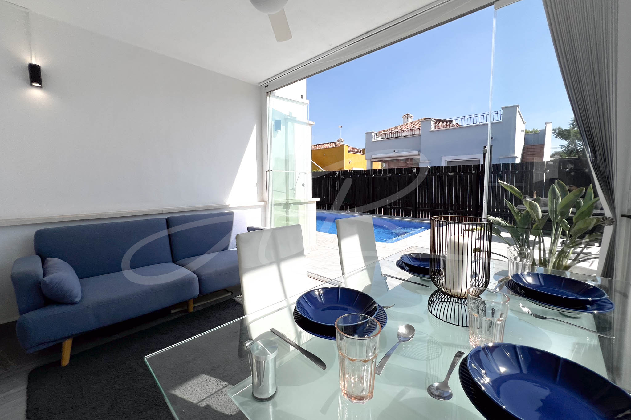 Two other major additions to this magical villa include; an enclosed covered terrace area that has given the property a complete ‘extra’ room, currently used as a dining room, but could make a great winter sun-lounge, a playroom or spacious office, and private off road parking wide enough for two vehicles.