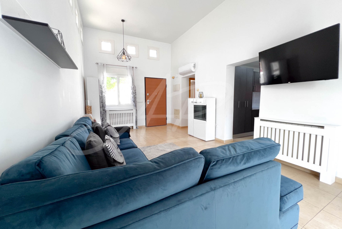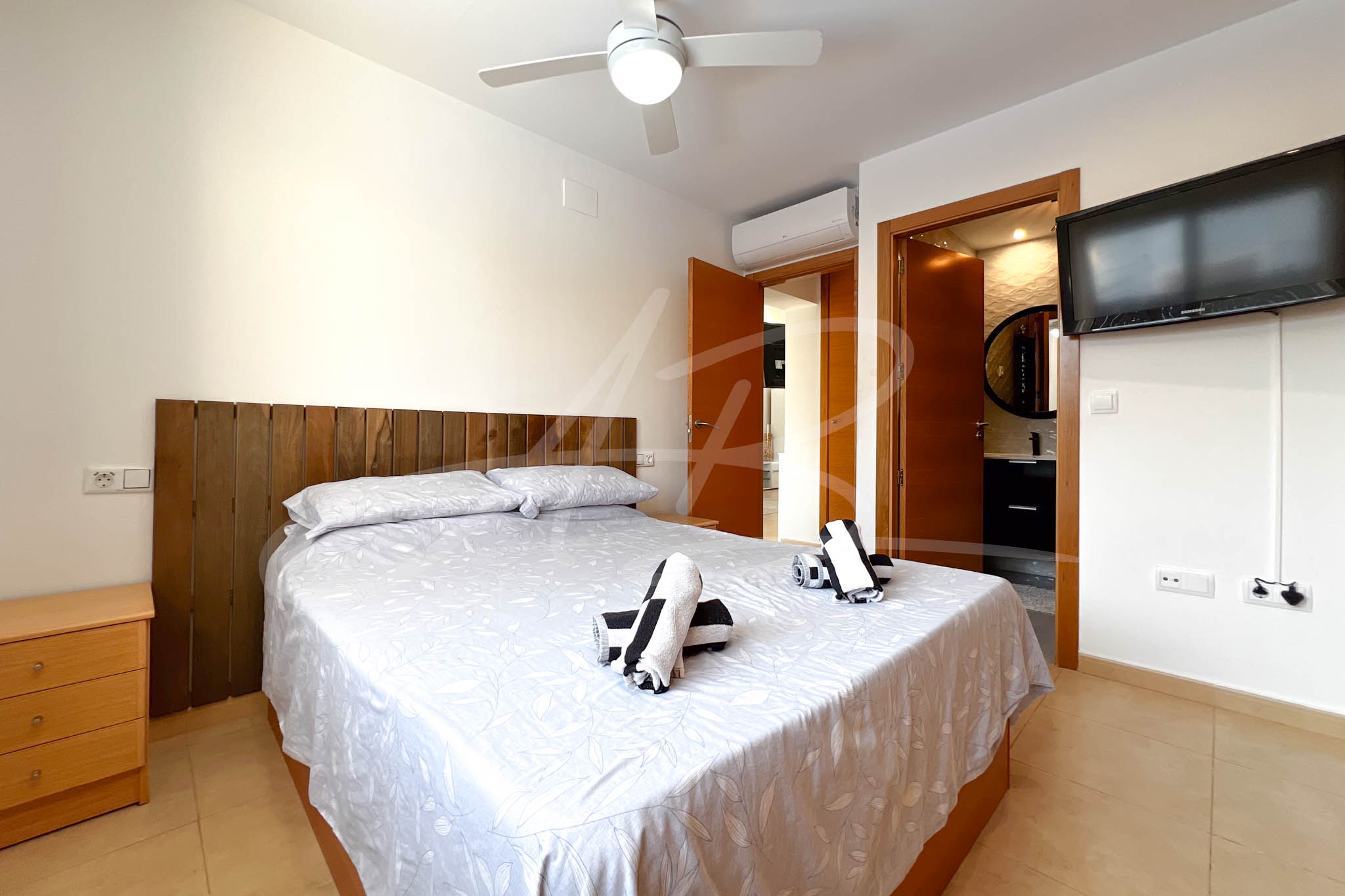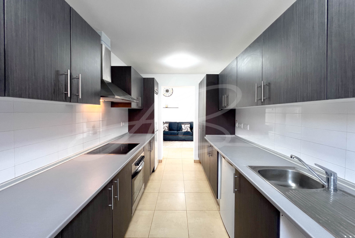 A bright and light open space; the air-conditioned lounge enjoys a larger-than-average-height ceiling which is fitted with window lights to allow the sunshine to literally flood in, whilst each of the two double bedrooms have large windows which again maximises the use of natural sunlight. Both rooms are fitted with full height wardrobes offering a large amount of both hanging and storage space, and, whilst the master bedroom benefits from an en-suite bathroom, the guest bedroom has a shower room located immediately adjacent.