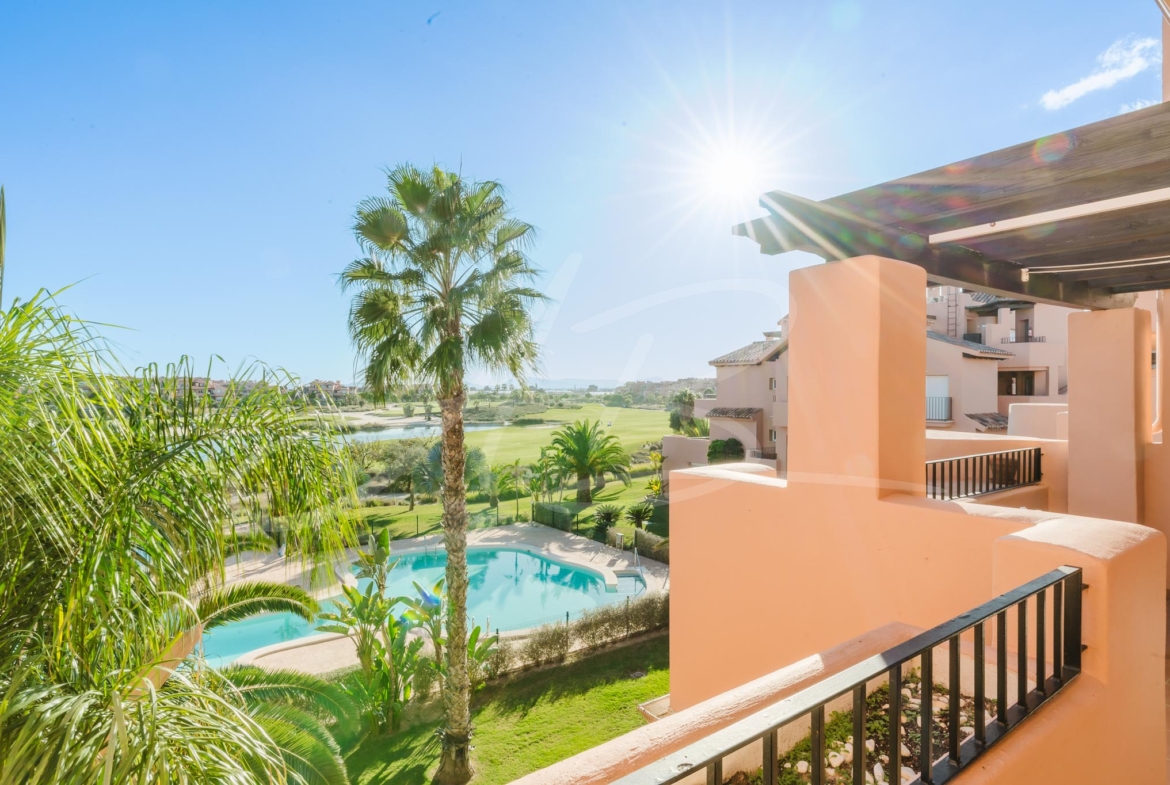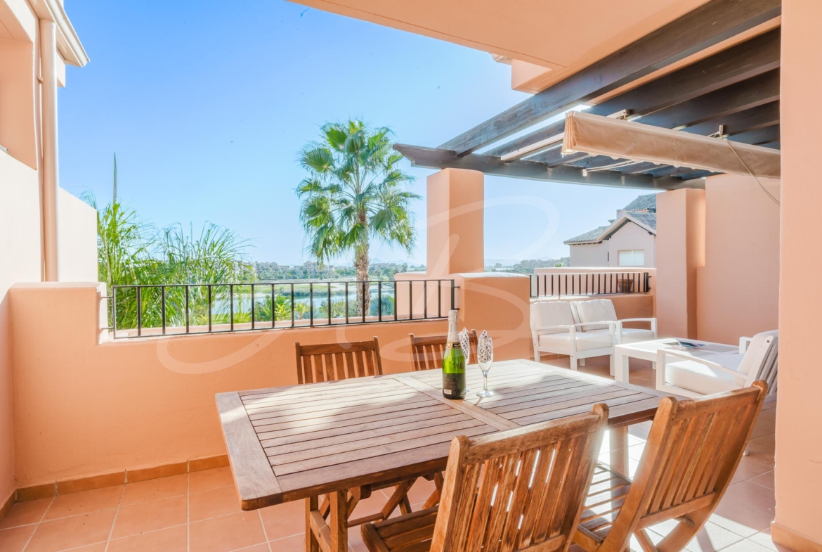 This second floor two bedroom, two bathroom, south facing apartment has sensational views out over the wild-life filled lake and golf course. These can be enjoyed from the property’s generously spacious terrace which leads off from both the main living space and the master bedroom. Whilst basically furnished, it is fully key ready and just ready and waiting to have an individual stamp put on it, if this is something that any new purchaser is interested in.