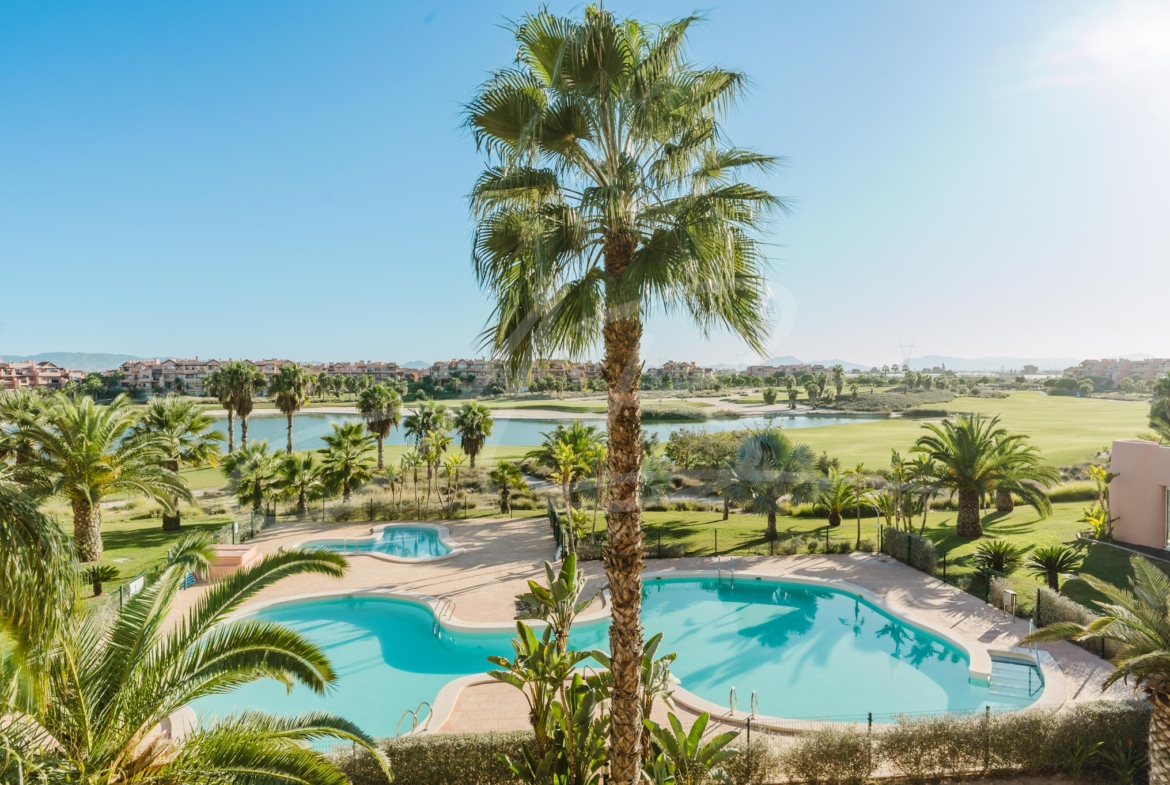 Mar Menor Golf Resort is a Private Resort designed with the enjoyment of the Mediterranean – located 5 km away – as well as a Mediterranean lifestyle, which is the envy of many, due to its undeniable health benefits. The wide beaches of Los Alcazares is a short drive away with its busy and buzzing atmosphere with a wide array of bars and restaurants, whilst a thirty minute drive away is the historical and spectacular city of Murcia. The still relatively new airport of Corvera is a twenty minute drive from the resort, whilst the much larger international airport of Alicante, is also within easy reach.
