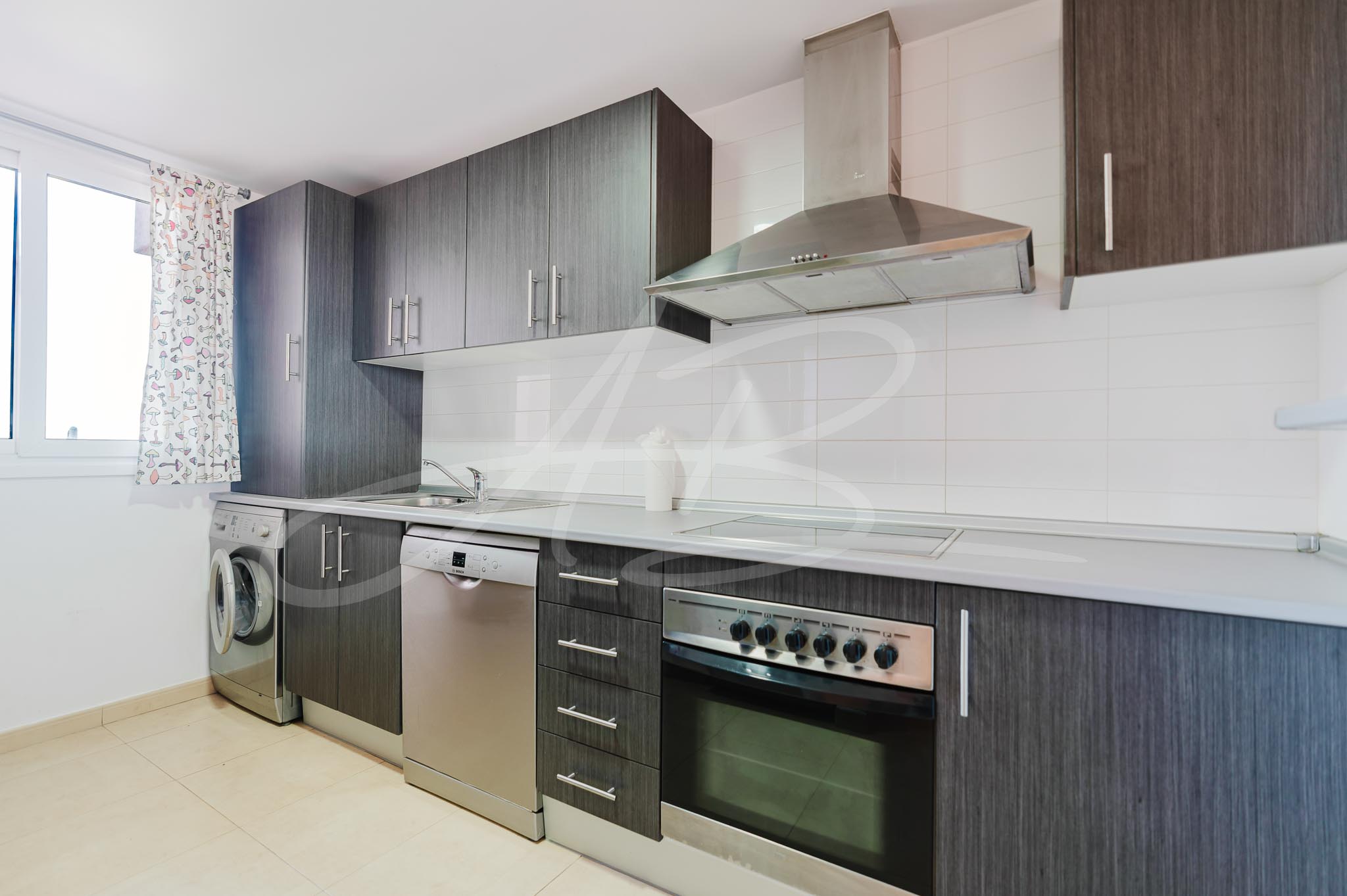 The main living/dining area is separated from the open-plan galley style kitchen by a high, modern breakfast bar making it perfect area for entertaining family and friends, especially when the doors to the terrace are open. The kitchen is modern and functional.