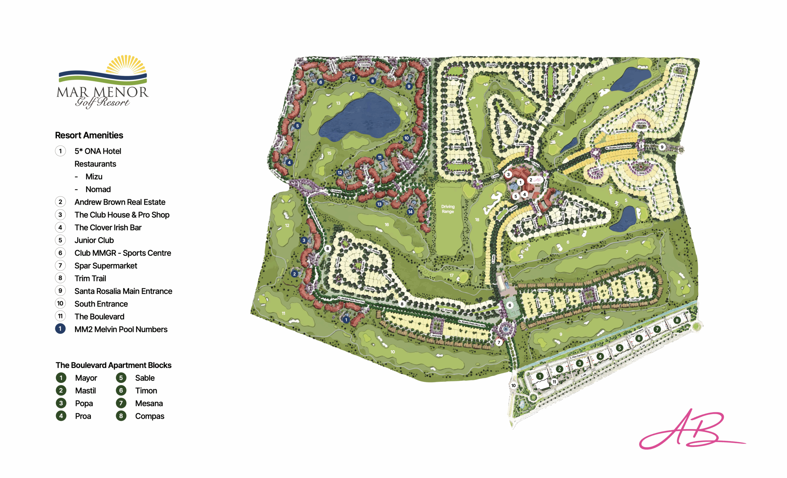The Mar Menor Resort has a twenty four hour private security team in place, a luxury sixty-four room five star hotel, and an eighteen hole golf course – designed by Jack Nicklaus and Dave Thomas – which features a spa with an outdoor pool and a heated indoor pool and a fully equipped gymnasium. Numerous bars and restaurants serve its guests ranging from The Club House, An Italian pizzeria, a Japanese restaurant and a typical and very popular Irish pub. There is also an on-site supermarket, a sports area with several padel courts. And if all of that isn’t enough, located just fifty metres from the south entrance of the Resort is ‘The Boulevard’ where you will find a bank, car rental, several restaurants to enjoy including Spanish, Indian, American, Mediterranean and many other cuisines, along with other shops and bars.
