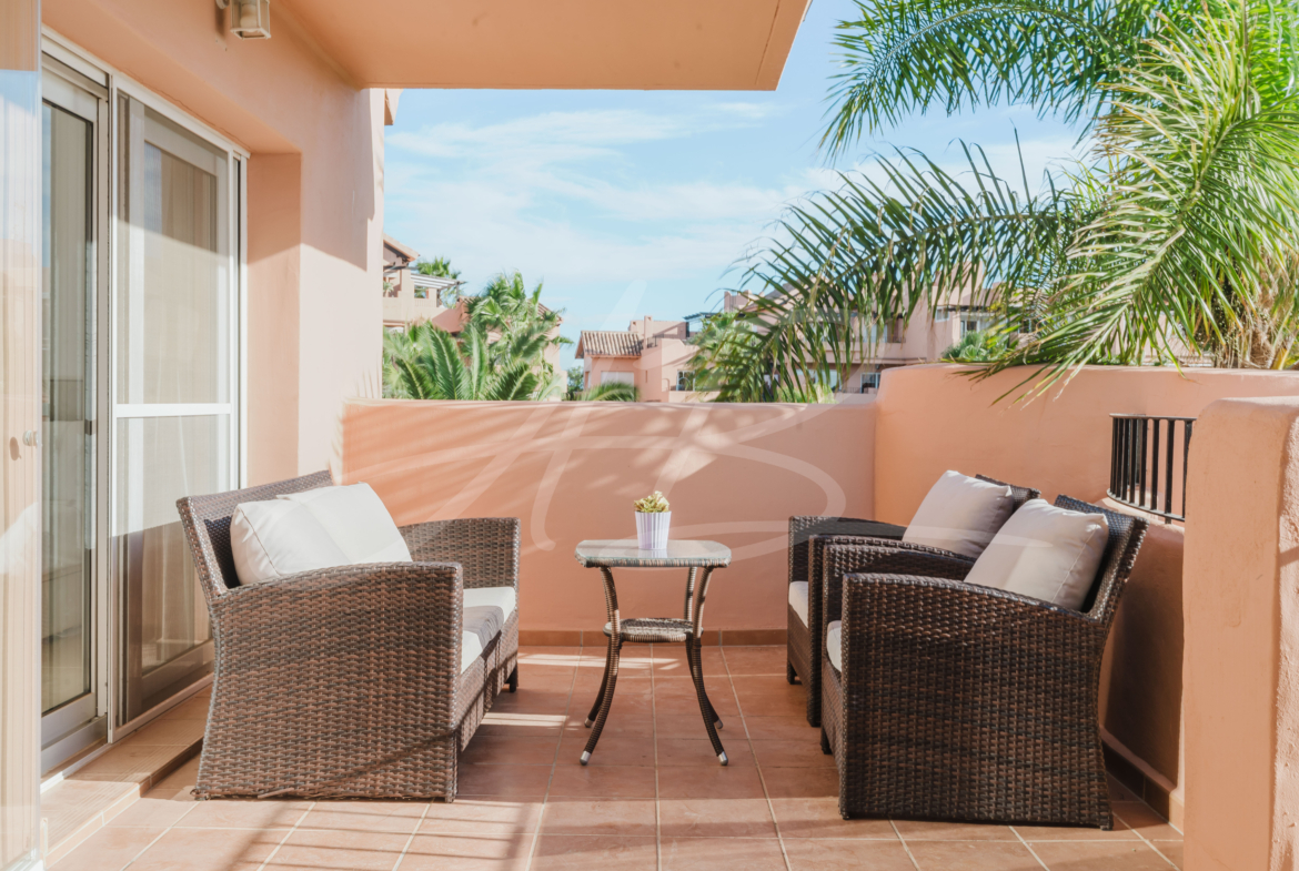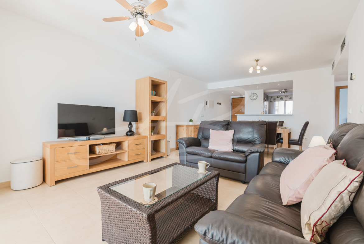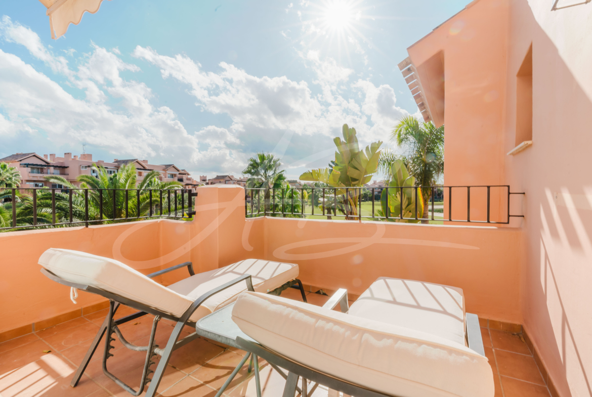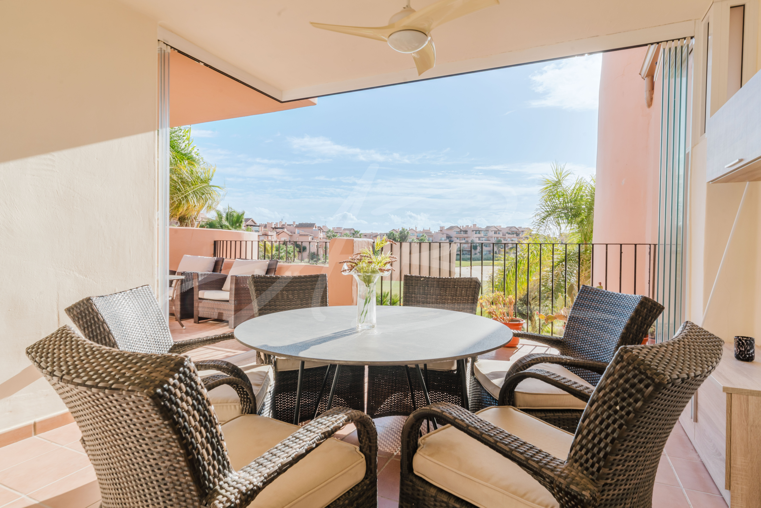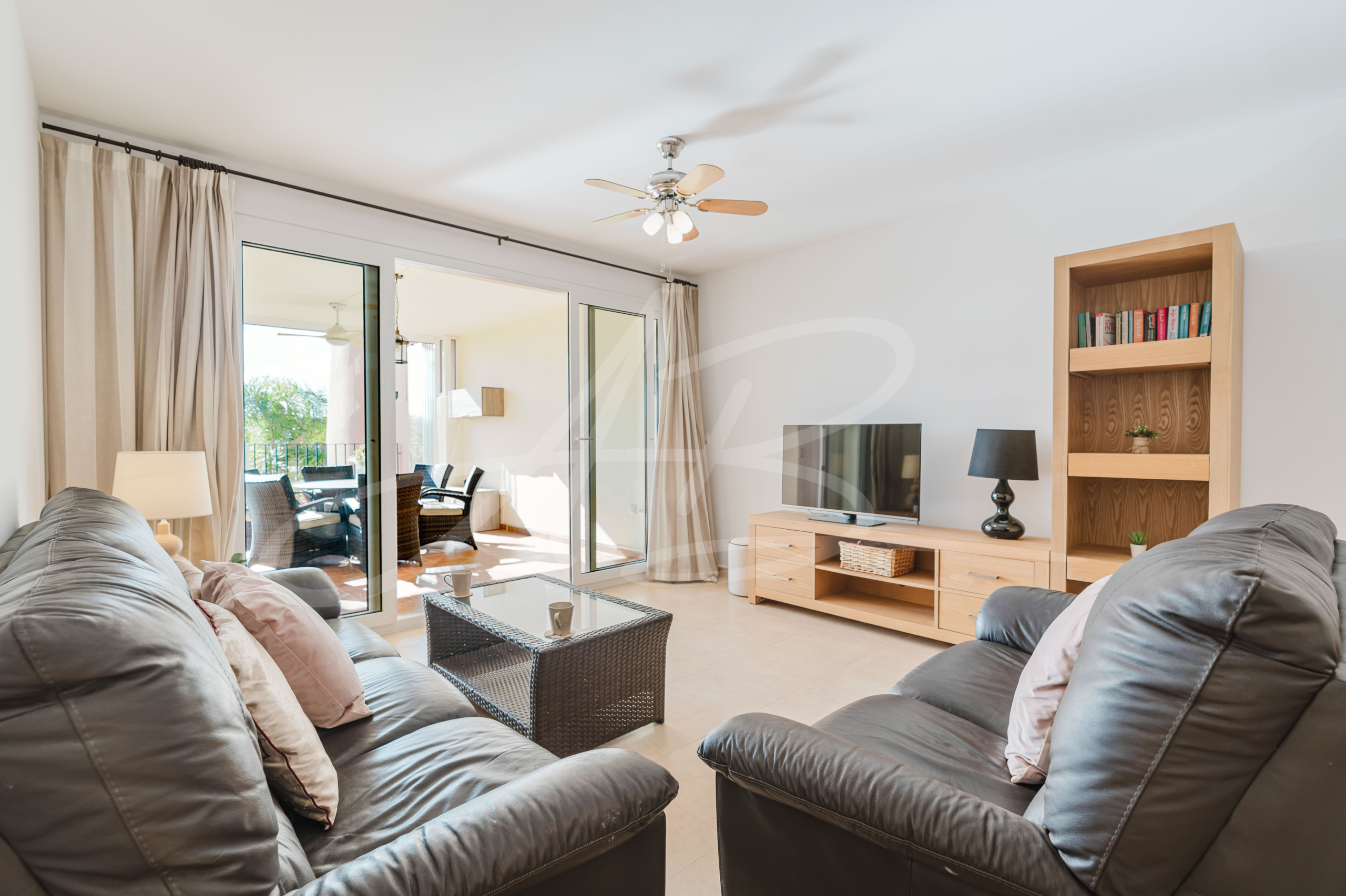 A stunning three bedroom, two bath apartment situated in the highly regarded Melvin Community on Mar Menor Golf Resort, combining outstanding outdoor sun terraces, stunning views, quality finishes and a premium position in the resort. Each of the three bedrooms opens directly onto its own private terrace, creating an exceptional connection between indoor and outdoor living. The main bedroom features its own ensuite bathroom and direct access — together with the lounge — to the generous main terrace, which enjoys sweeping views across the lake and the golf course. The two further bedrooms each open onto terraces overlooking the communal swimming pool, offering sun-filled, relaxing spaces in their own right.