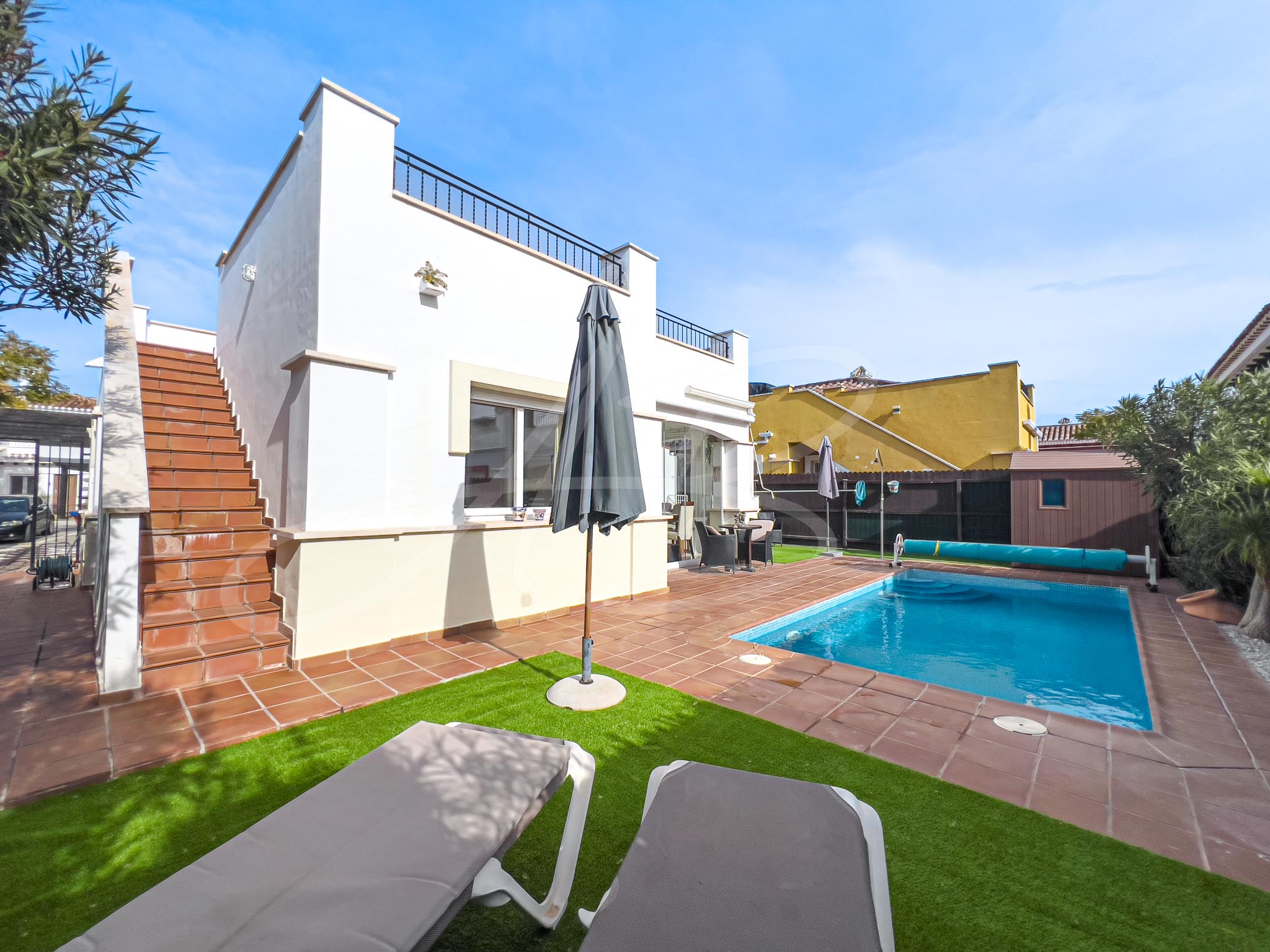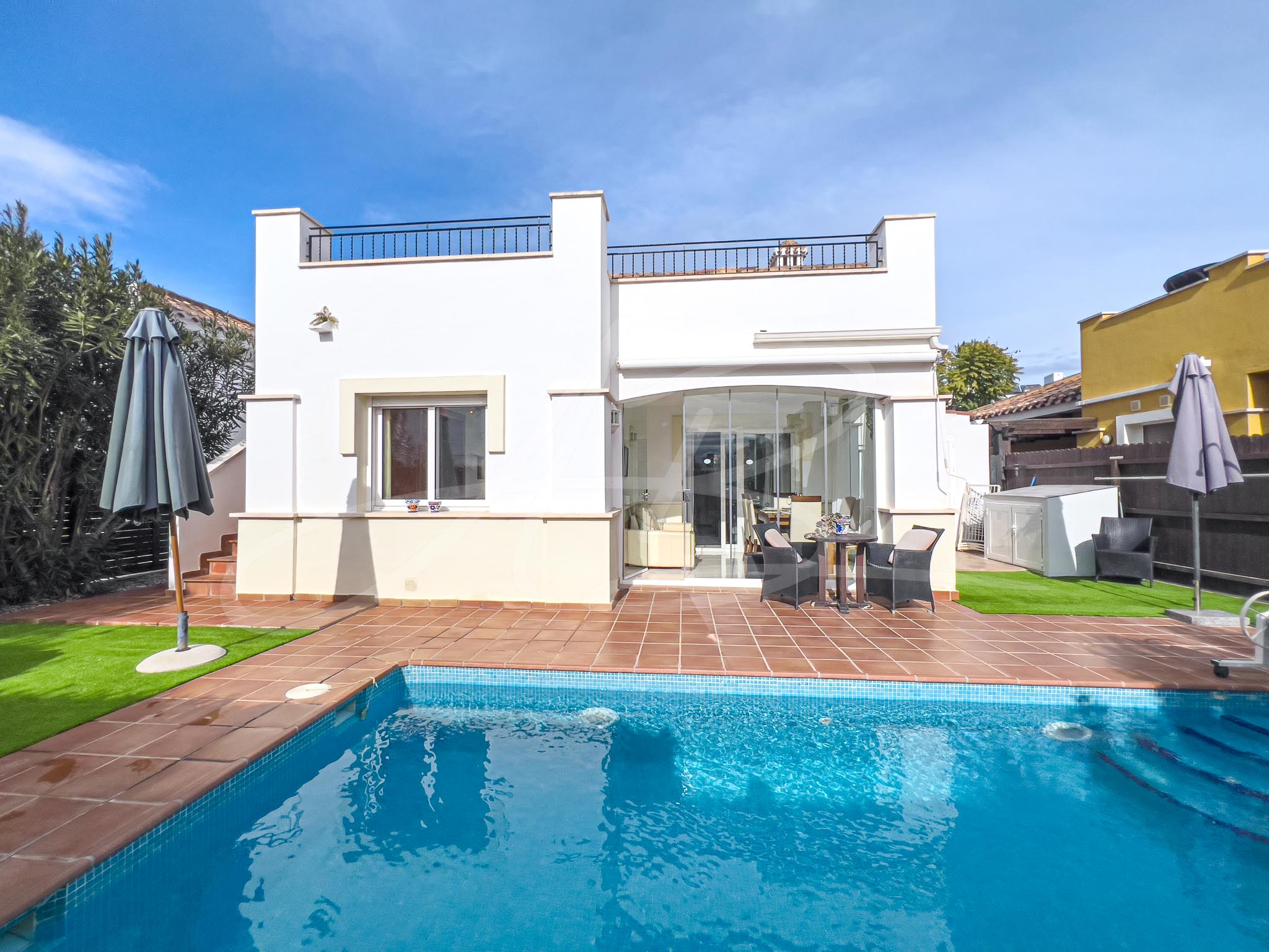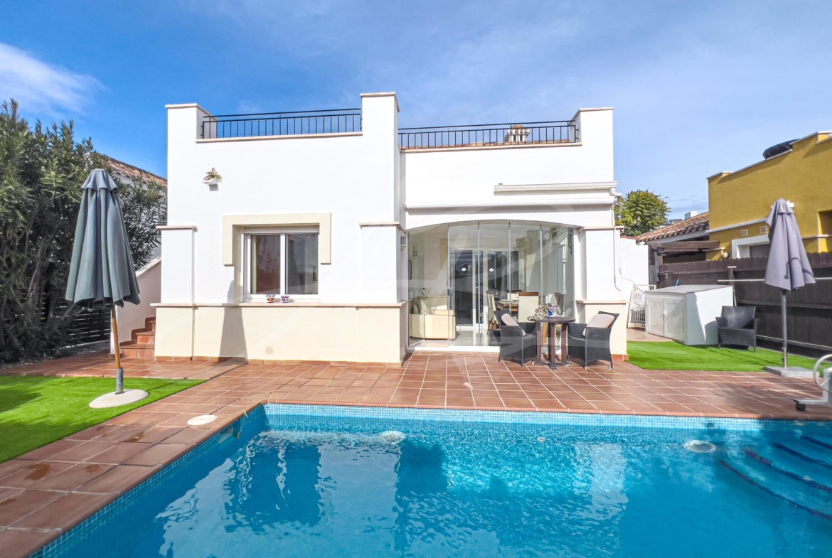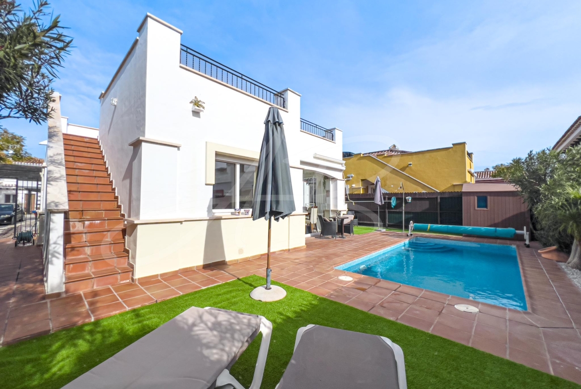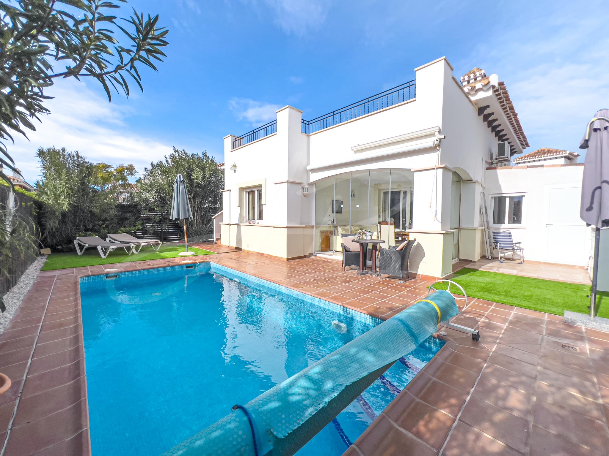 Two other major additions to this magical villa include; an enclosed covered terrace area that has given the property a complete ‘extra’ room, currently used as a dining room, but could make a great winter sun-lounge, a playroom or spacious office and a secondary extension which has given this villa the addition of a third bedroom, a feature unique to this style of property.
