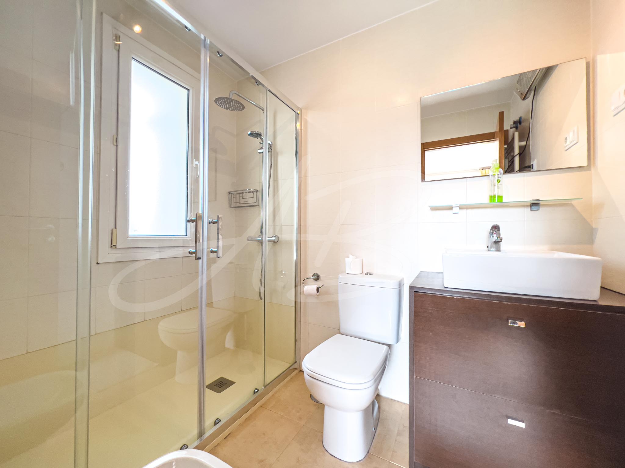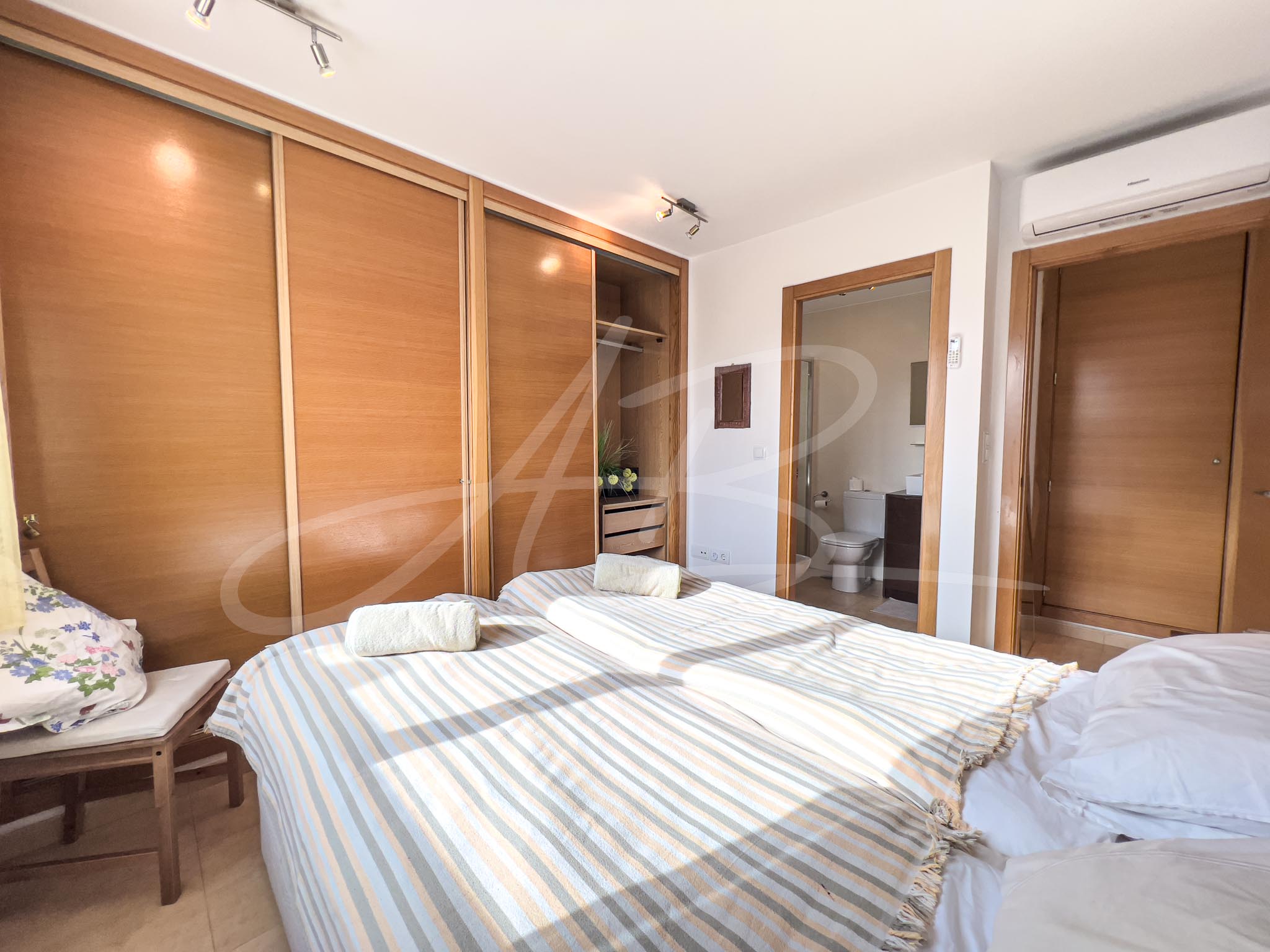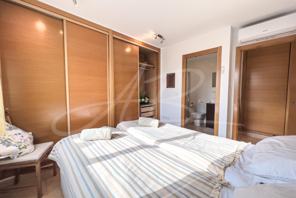 A bright and light open space; the air-conditioned lounge enjoys a larger-than-average-height ceiling which is fitted with window lights to allow the sunshine to literally flood in, whilst each of the two double bedrooms have large windows which again maximises the use of natural sunlight. Both rooms are fitted with full height wardrobes offering a large amount of both hanging and storage space, and, whilst the master bedroom benefits from an en-suite bathroom, the guest bedroom has a shower room located immediately adjacent.