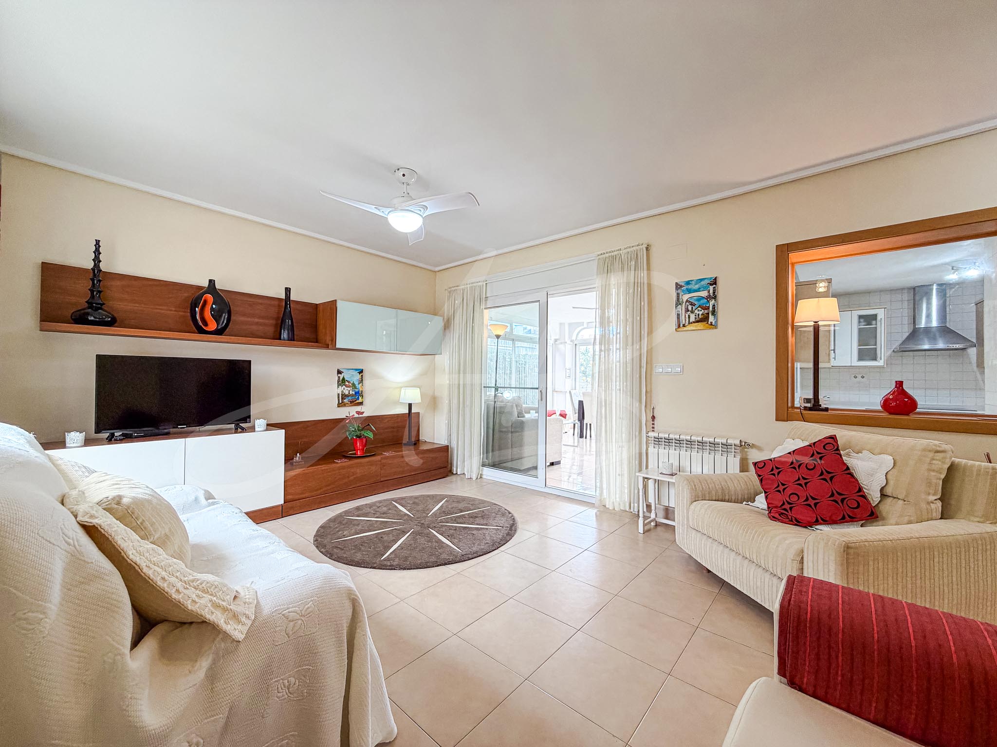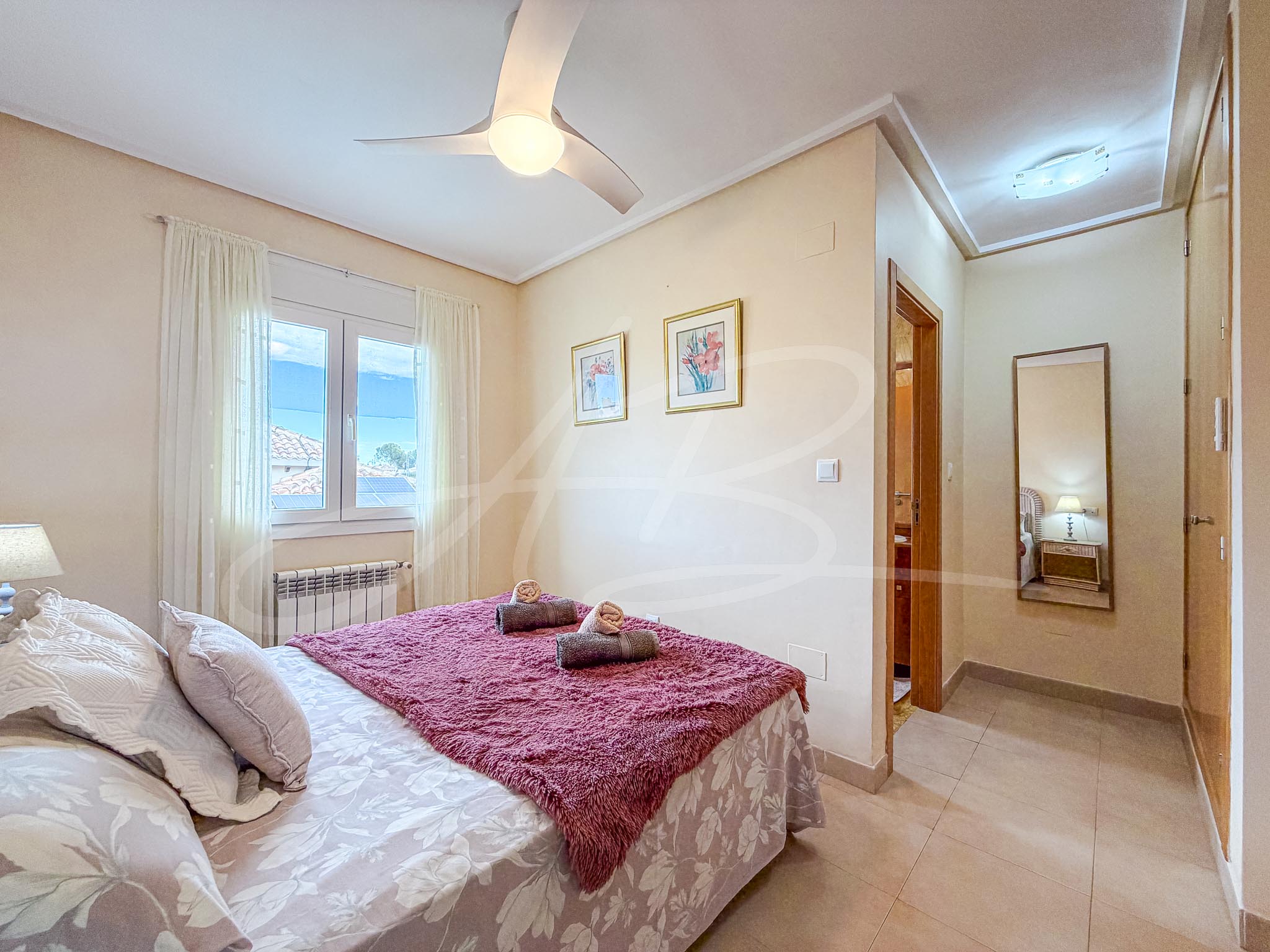 Back inside, the main living area is sunny and bright thanks to its large window overlooking the villa’s frontage, and patio doors to the rear which allow for plenty of natural light to flood in. The kitchen has a very handy utility area located directly adjacent and there is a handy downstairs shower room positioned at the foot of the stairs.