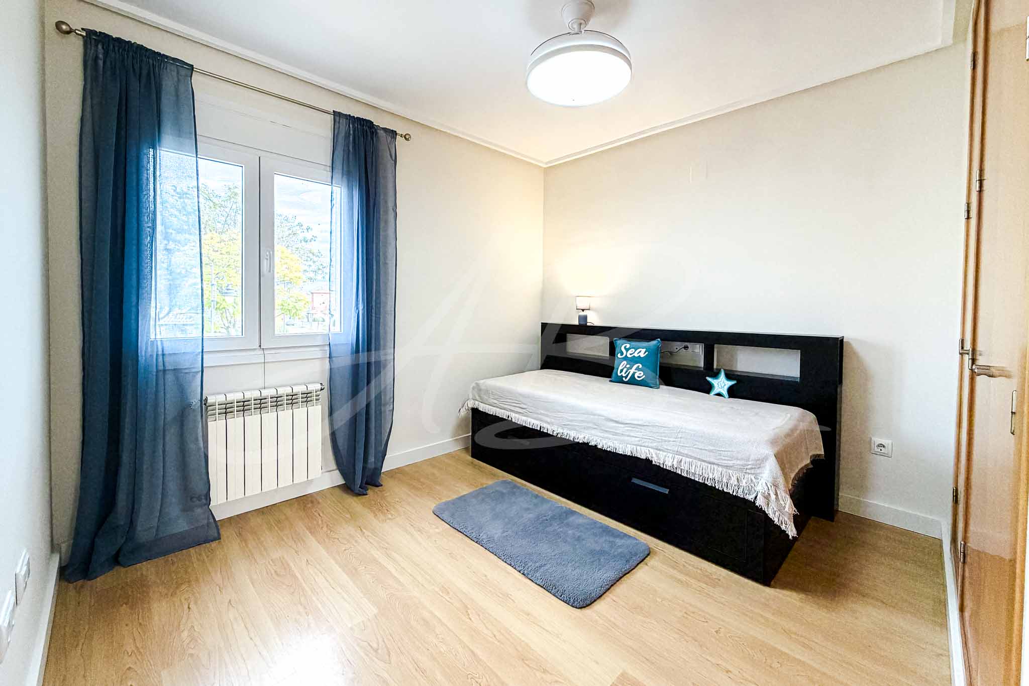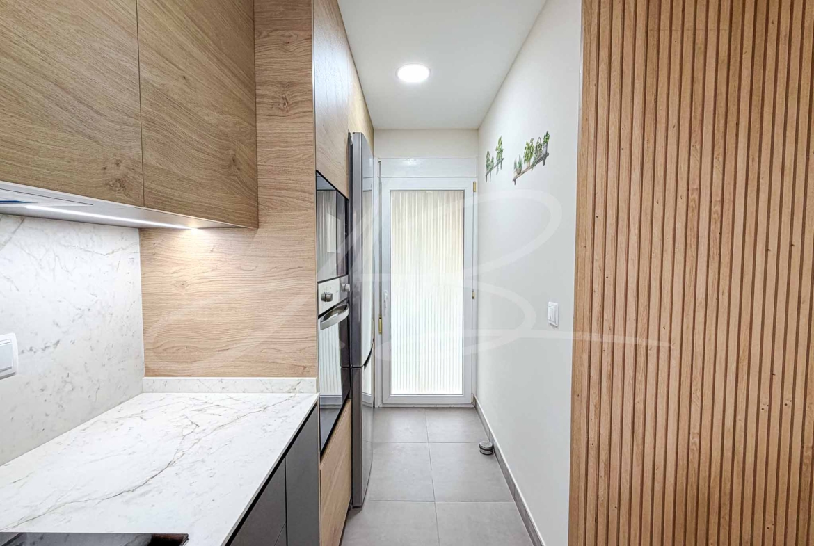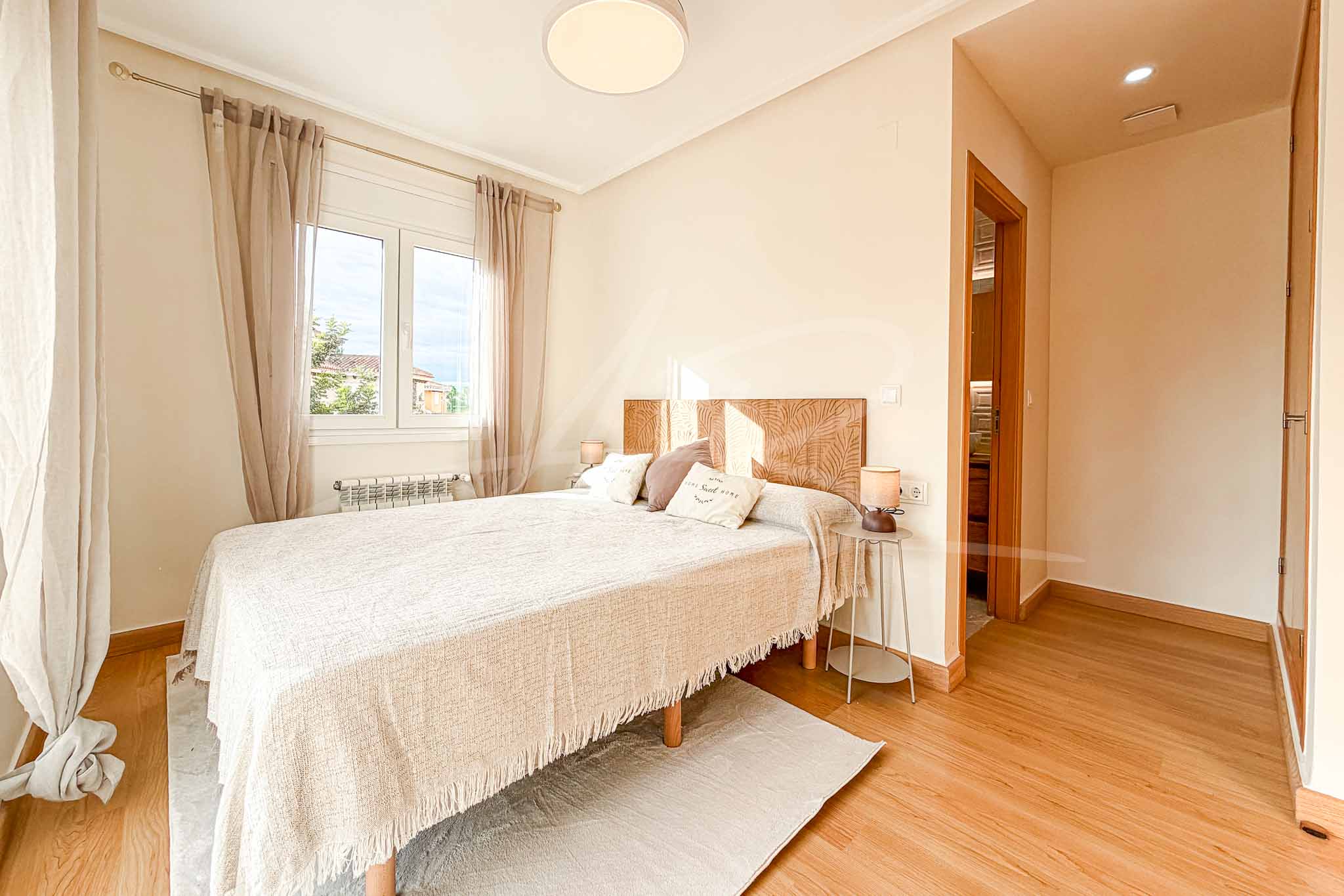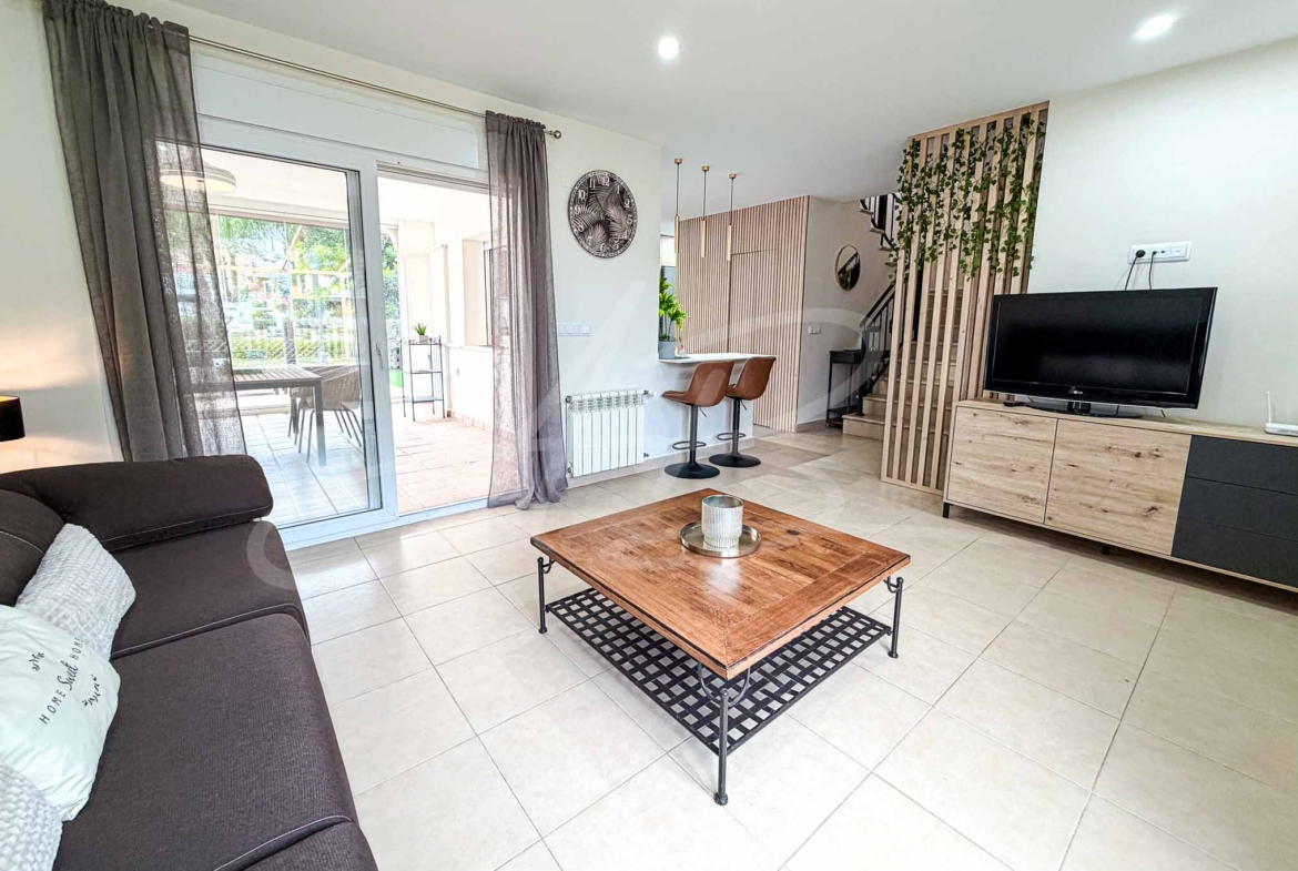 The villa’s main entrance opens up into the bright and welcoming living area, fully fitted kitchen, and a recently updated and very handy shower room located at the foot of the stairs. Sleek wooden wall panelling creates a modern twist, and the overall feel is an understated, sleek, almost Scandinavian style, home which really must be seen to be fully appreciated.