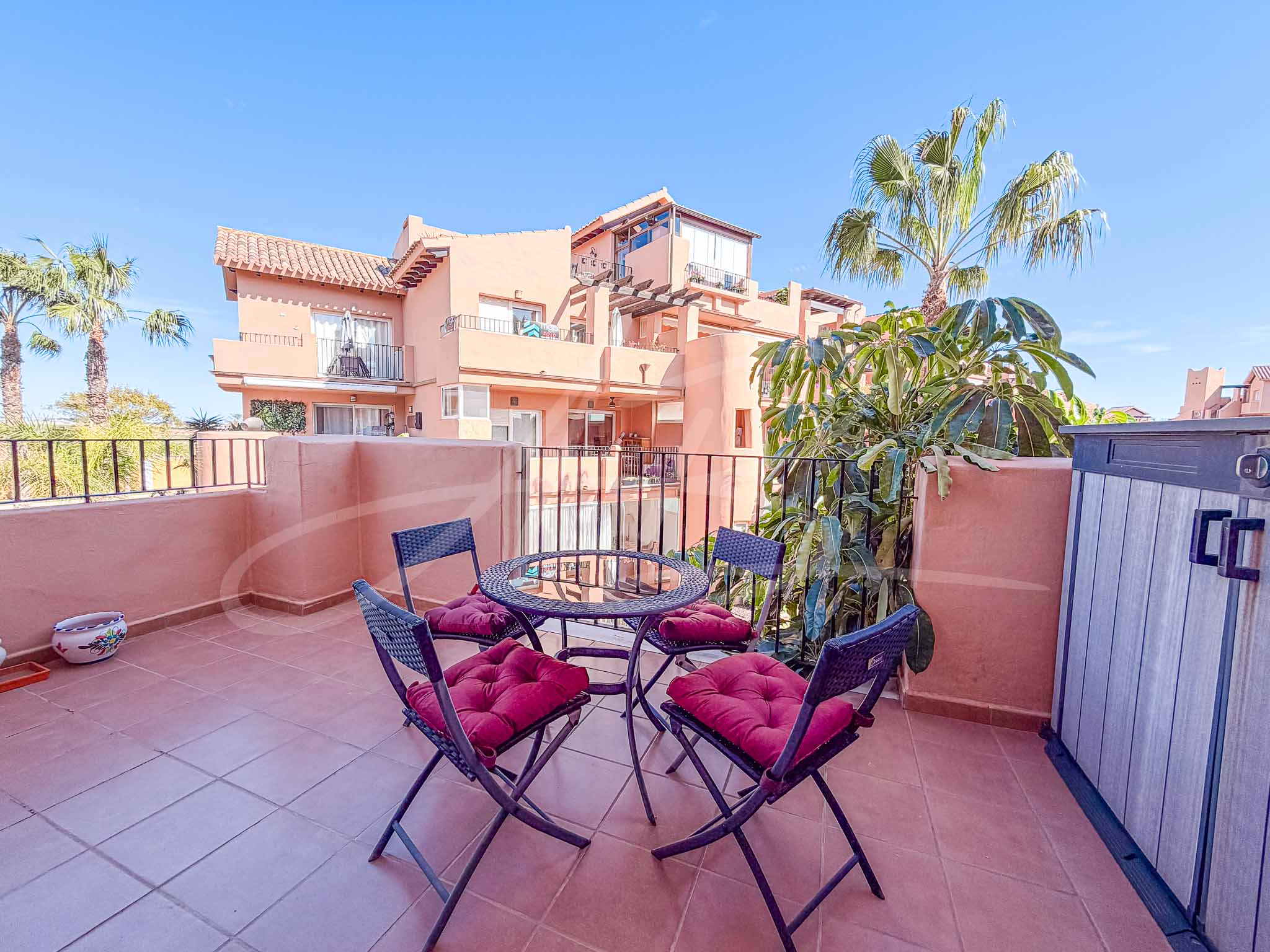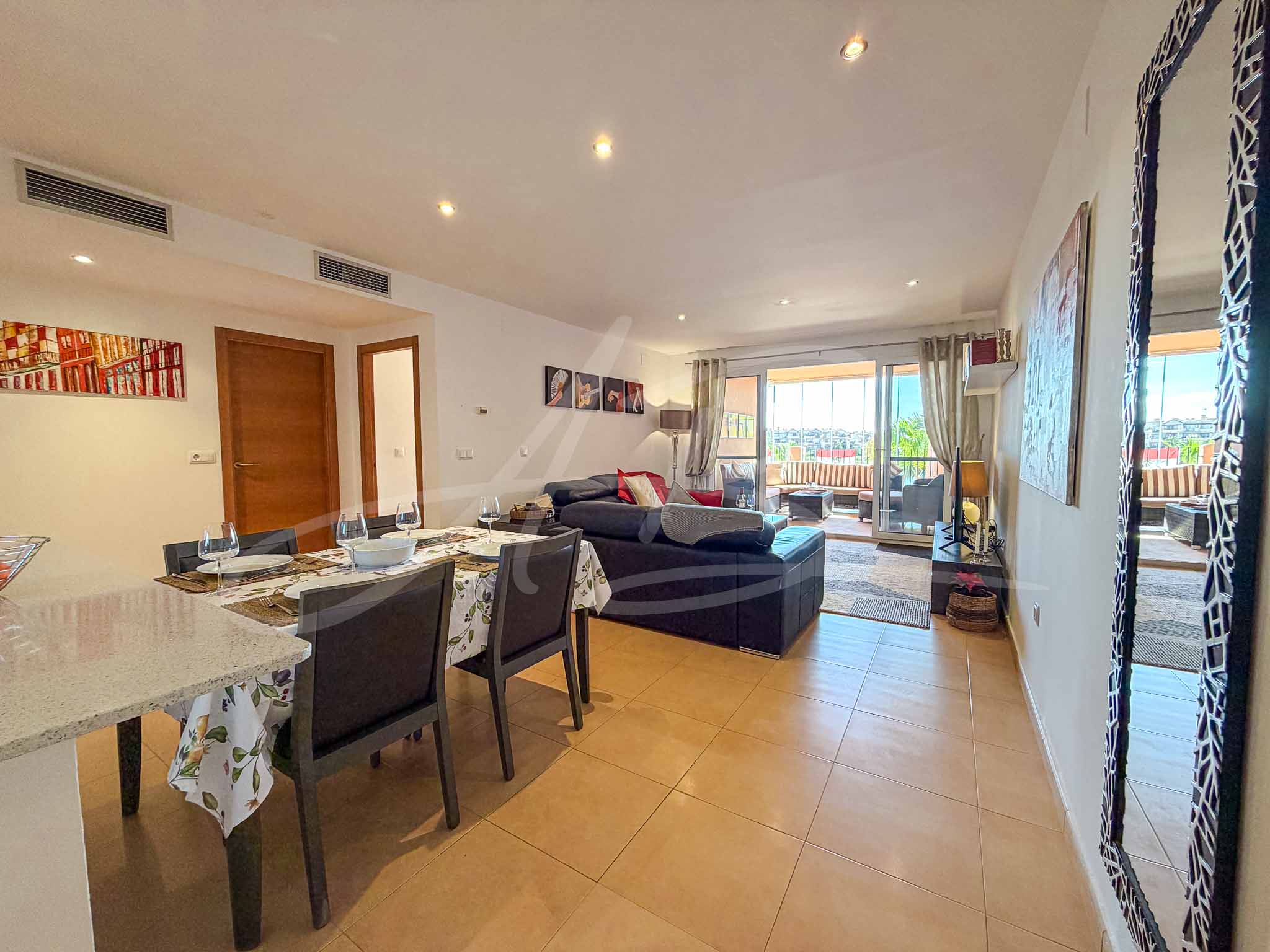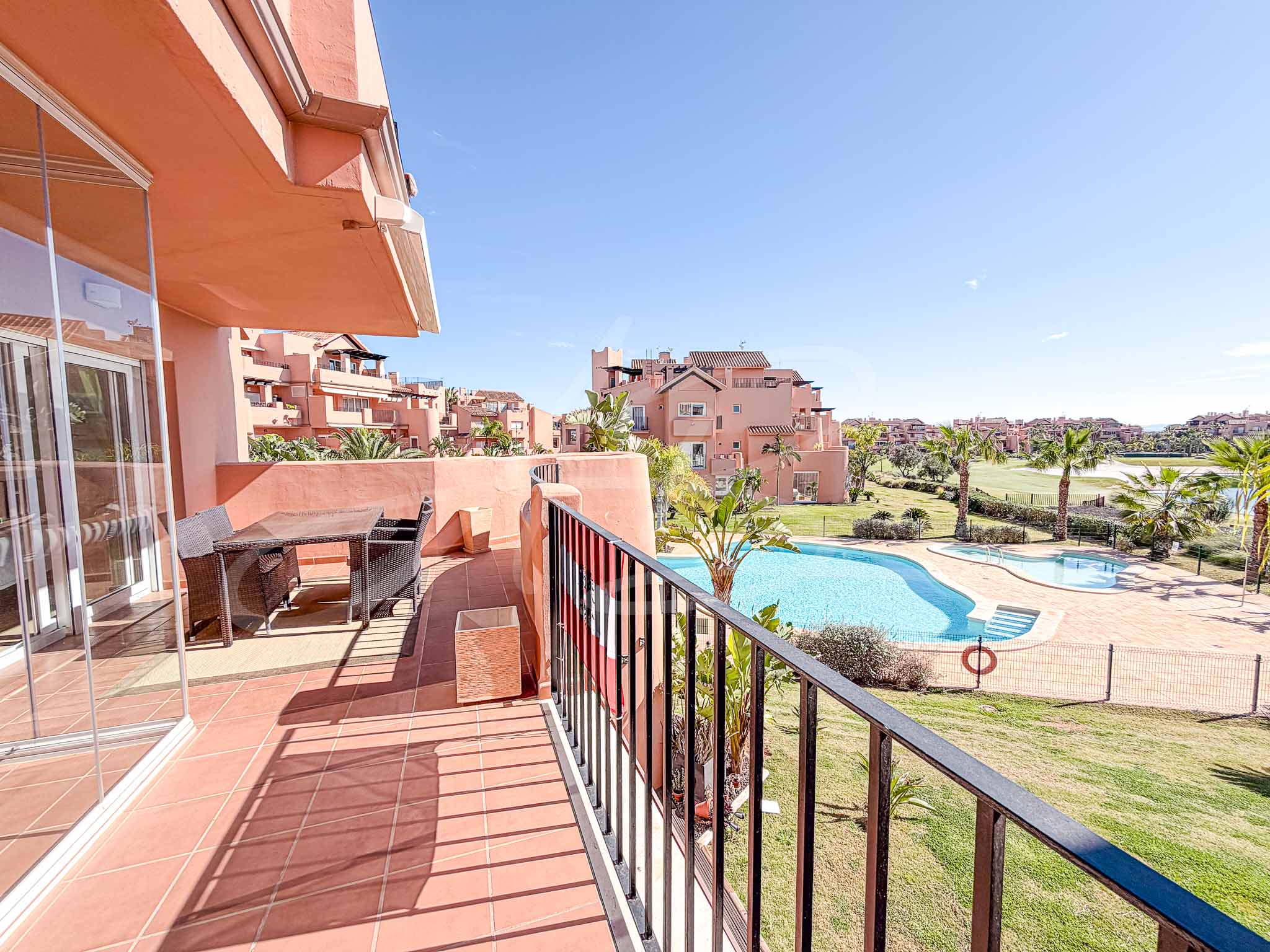 Mar Menor Golf Resort is a Private Resort designed with the enjoyment of the Mediterranean – located 5 km away – as well as a Mediterranean lifestyle, which is the envy of many, due to its undeniable health benefits. The wide beaches of Los Alcazares is a short drive away with its busy and buzzing atmosphere with a wide array of bars and restaurants, whilst a thirty minute drive away is the historical and spectacular city of Murcia. The still relatively new airport of Corvera is a twenty minute drive from the resort, whilst the much larger international airport of Alicante, is also within easy reach.