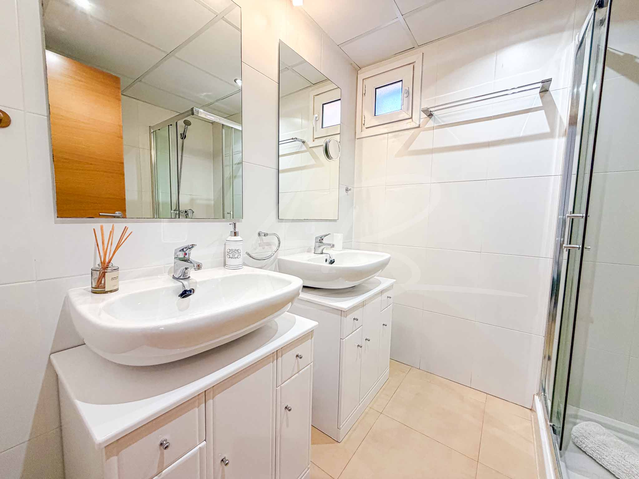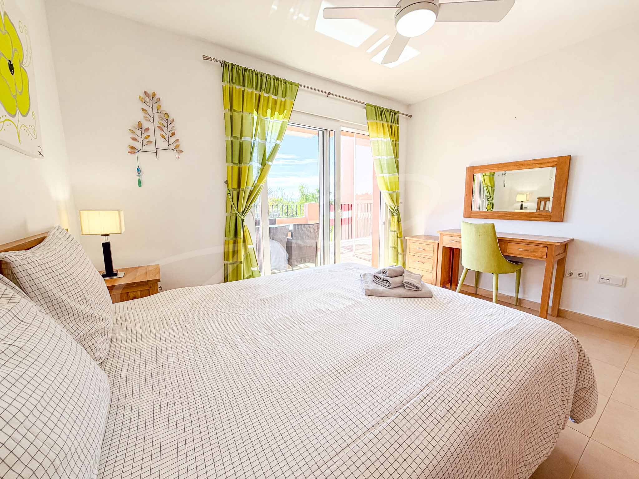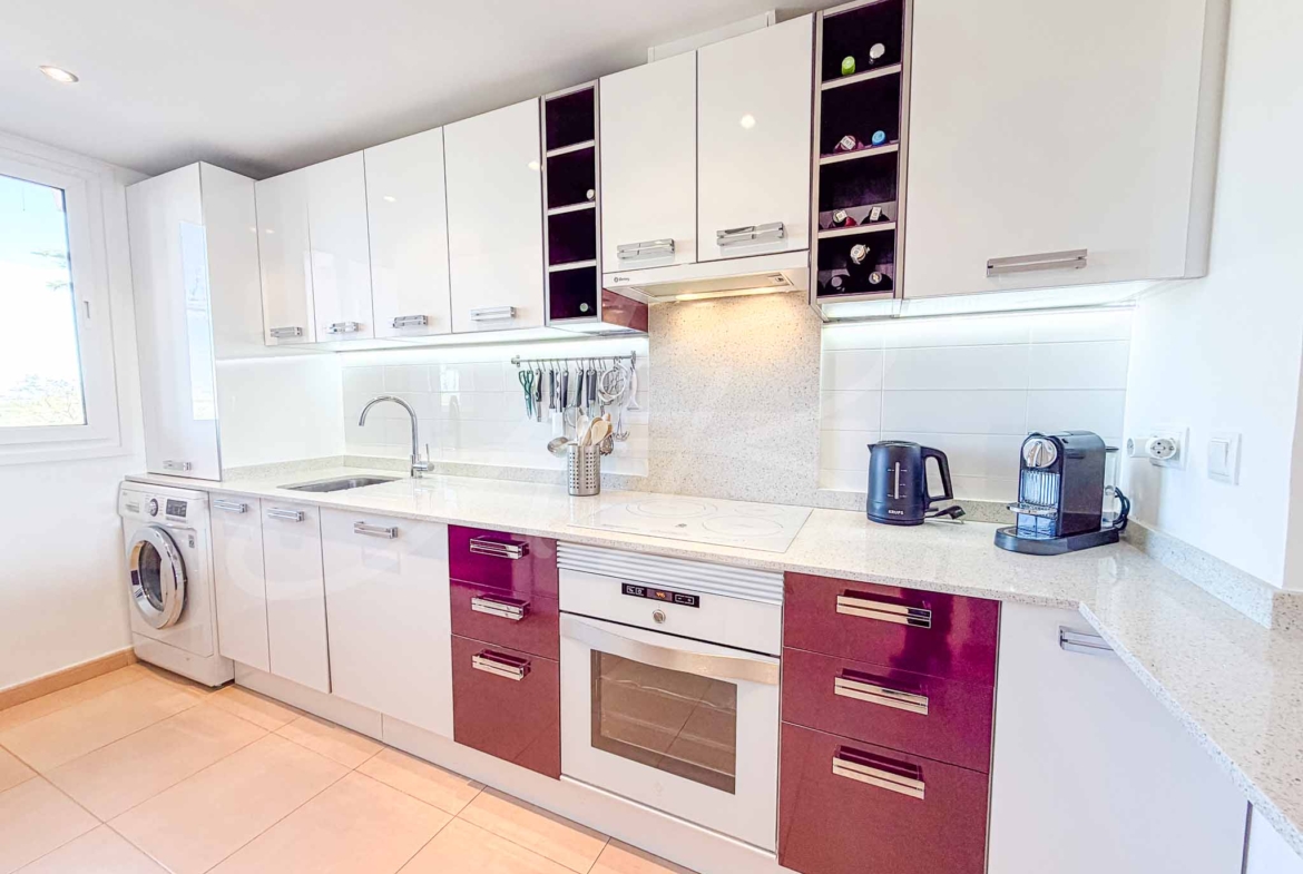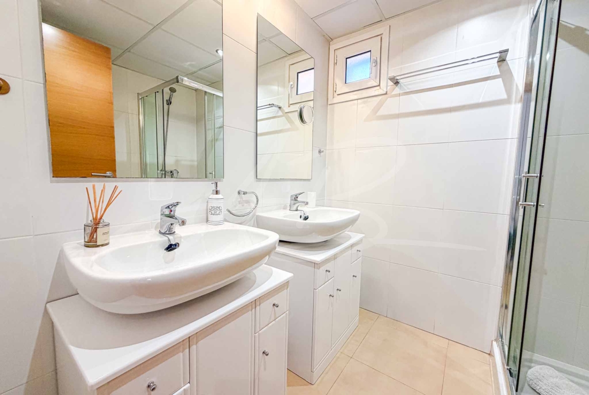 The interior layout is thoughtfully designed for both comfort and privacy, featuring three generous double bedrooms outfitted with full-height wooden wardrobes. The guest bedrooms share a modern adjacent shower room, while the master suite serves as a spacious retreat with its own en-suite bathroom and direct access to the scenic terrace. Every room is finished to a high standard, offering a bright and airy atmosphere that emphasizes the Mediterranean lifestyle.