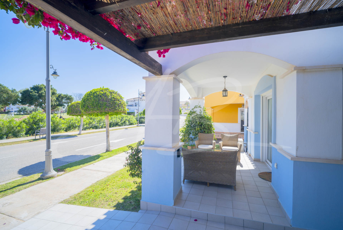 Back inside the property, the forward facing patio doors lead out onto an attractive covered terrace which provides a lovely shaded area for afternoon tea or the reading of a good book. The downstairs is also home to a handy washroom/wc located to the right of the main entrance.