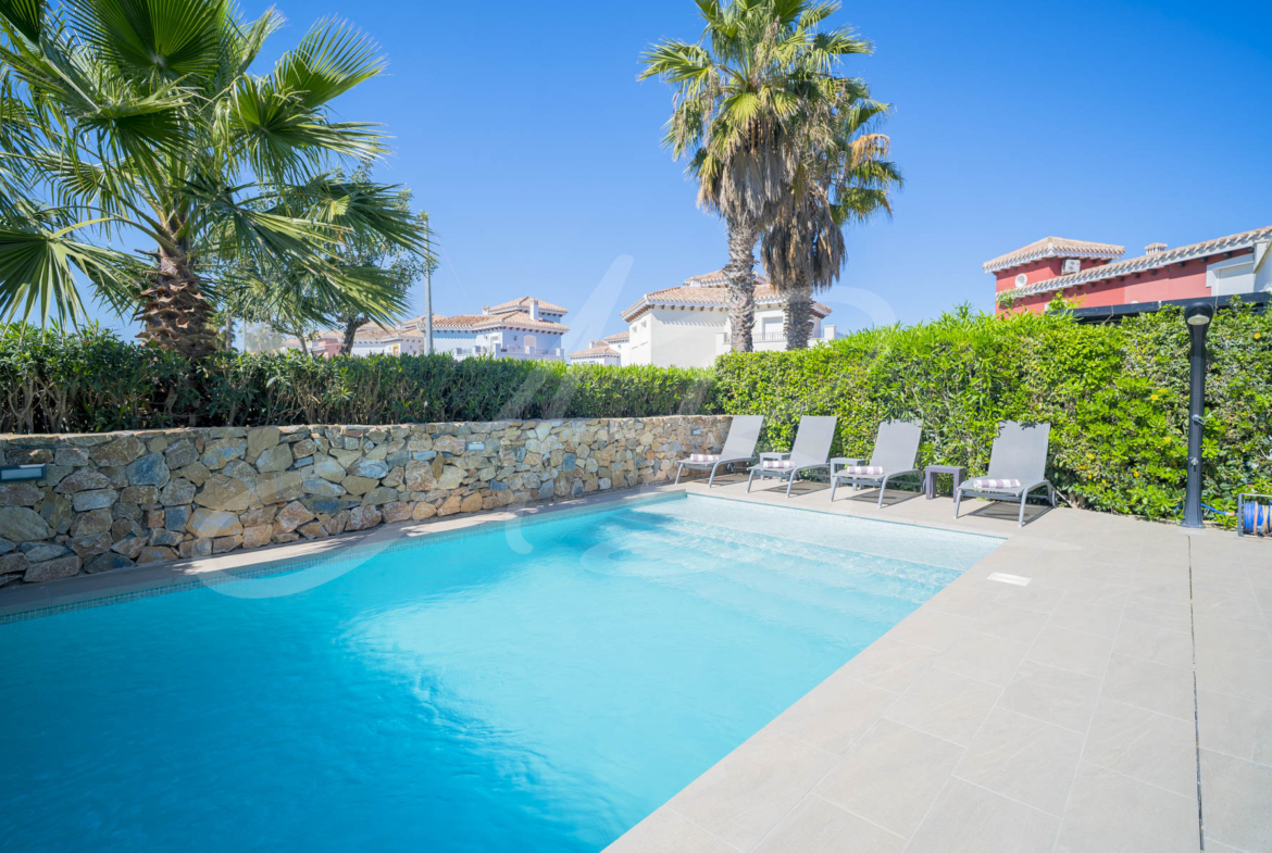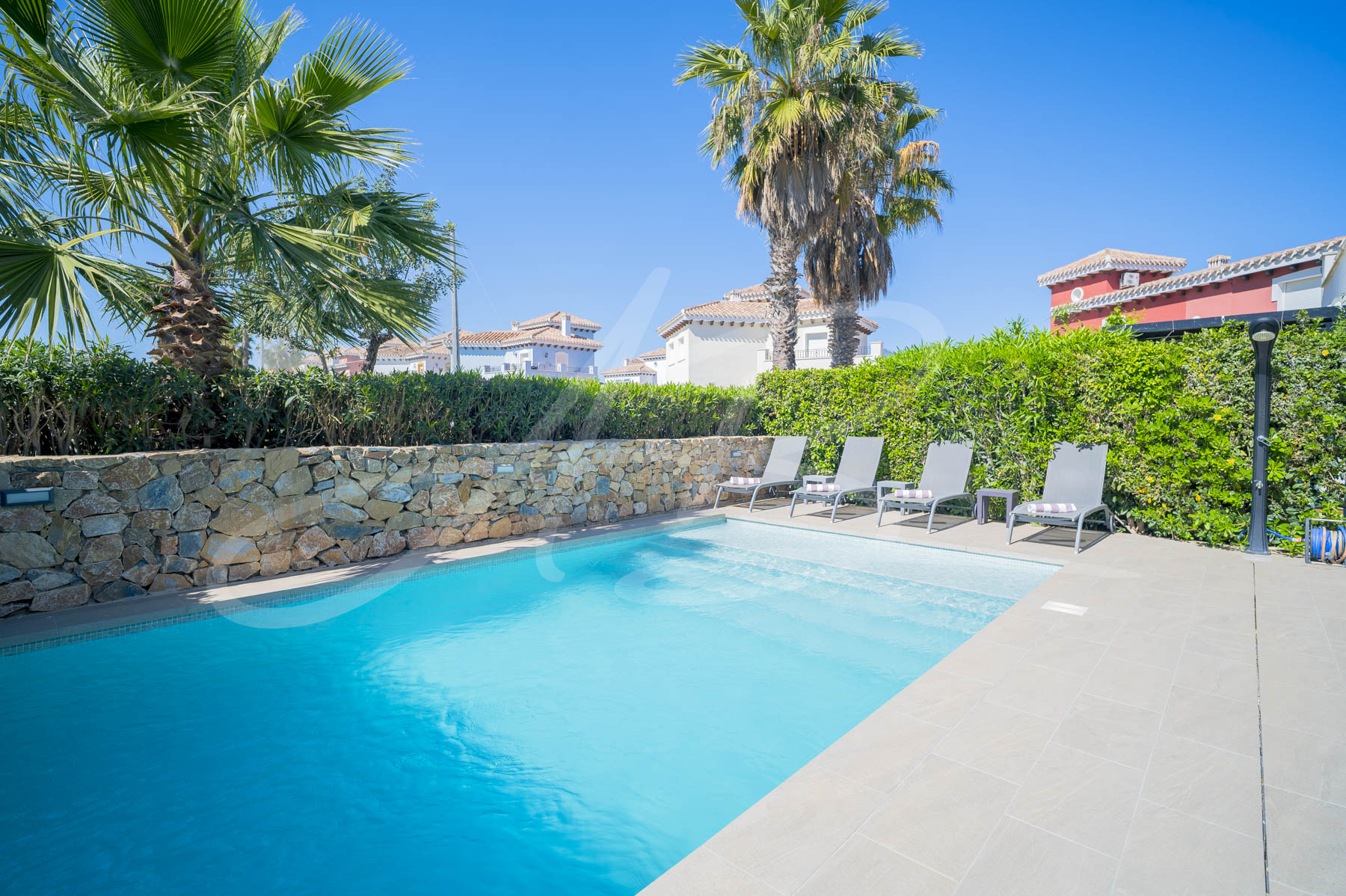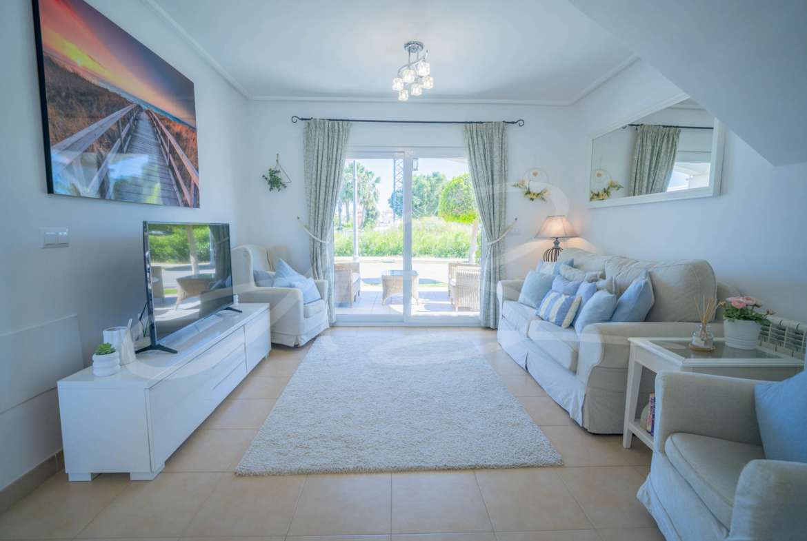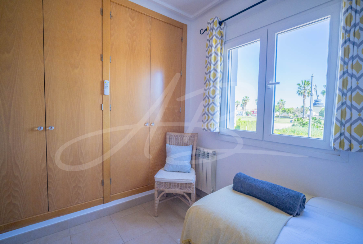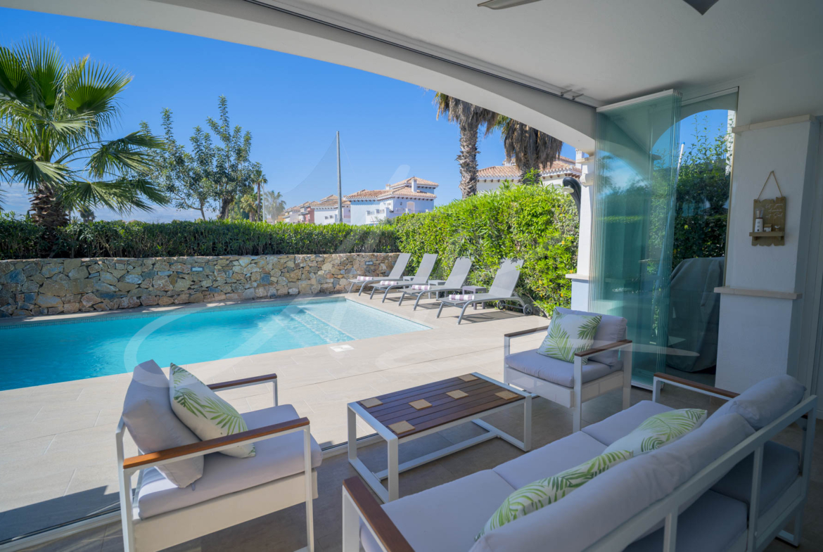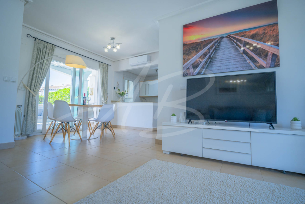 This incredible and beautifully presented three bedroom Isla Grosa home is situated in a wonderful position on the Mar Menor Golf Resort, being within a short strolling distance of the resort’s five star hotel, golf club, and the main resort town centre. A little further away is the popular Club Mar Menor with its superb sporting facilities and an on-site bar/restaurant, a well stocked supermarket, and the busy and bustling Boulevard with its many bars and restaurants.